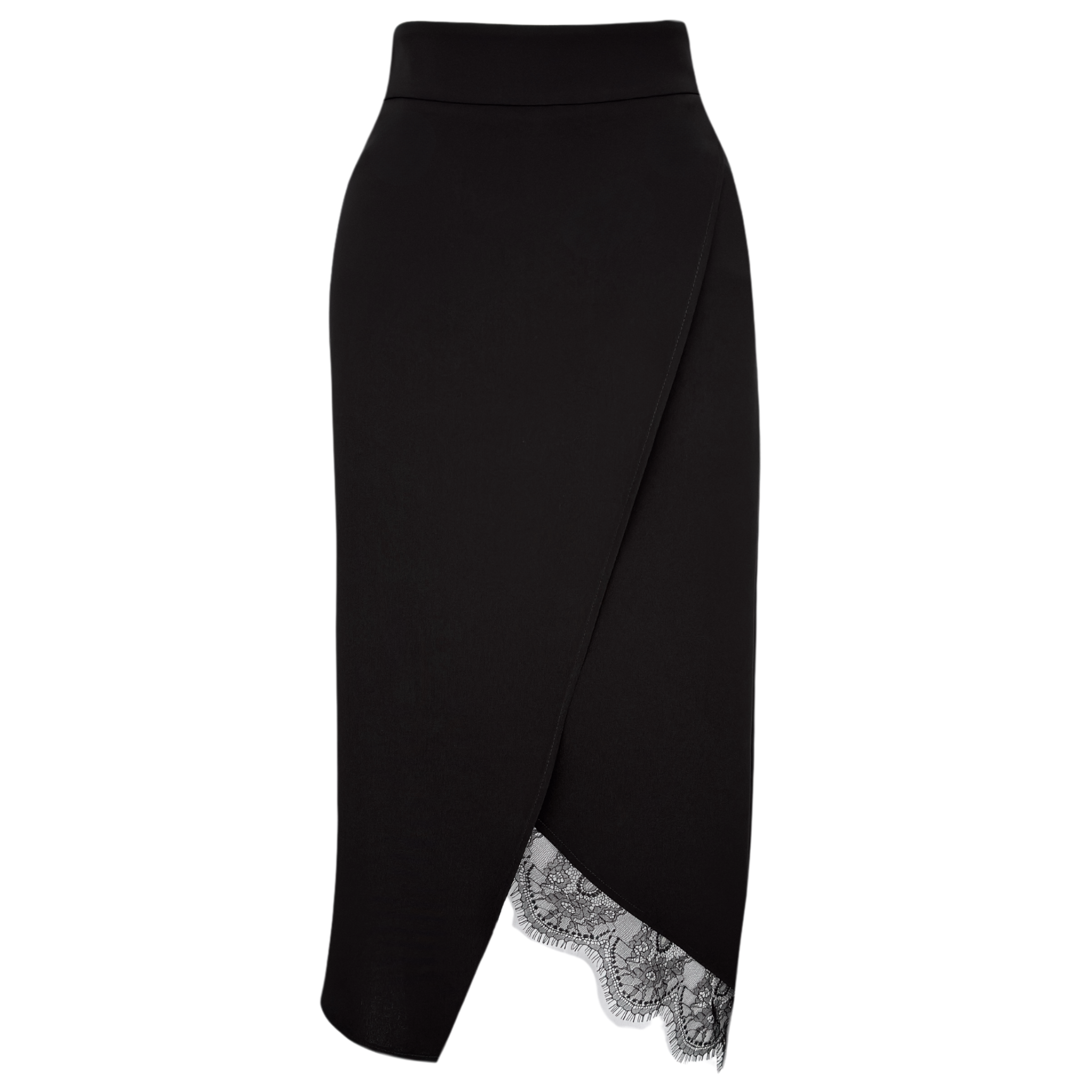 ASYMMETRICAL CUT LACE DETAIL SKIRT BLACK
