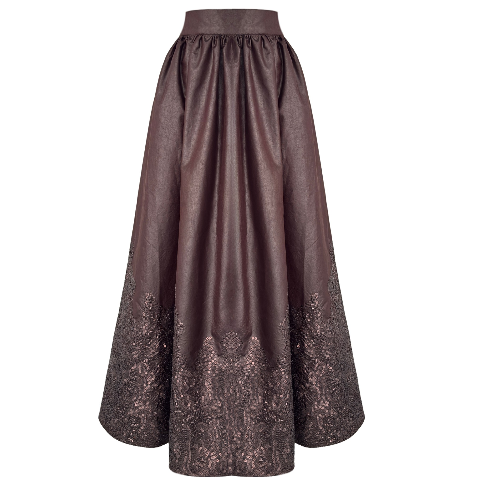 LEATHER-LOOK SEQUINED DESIGN SKIRT CHOCOLATE BROWN
