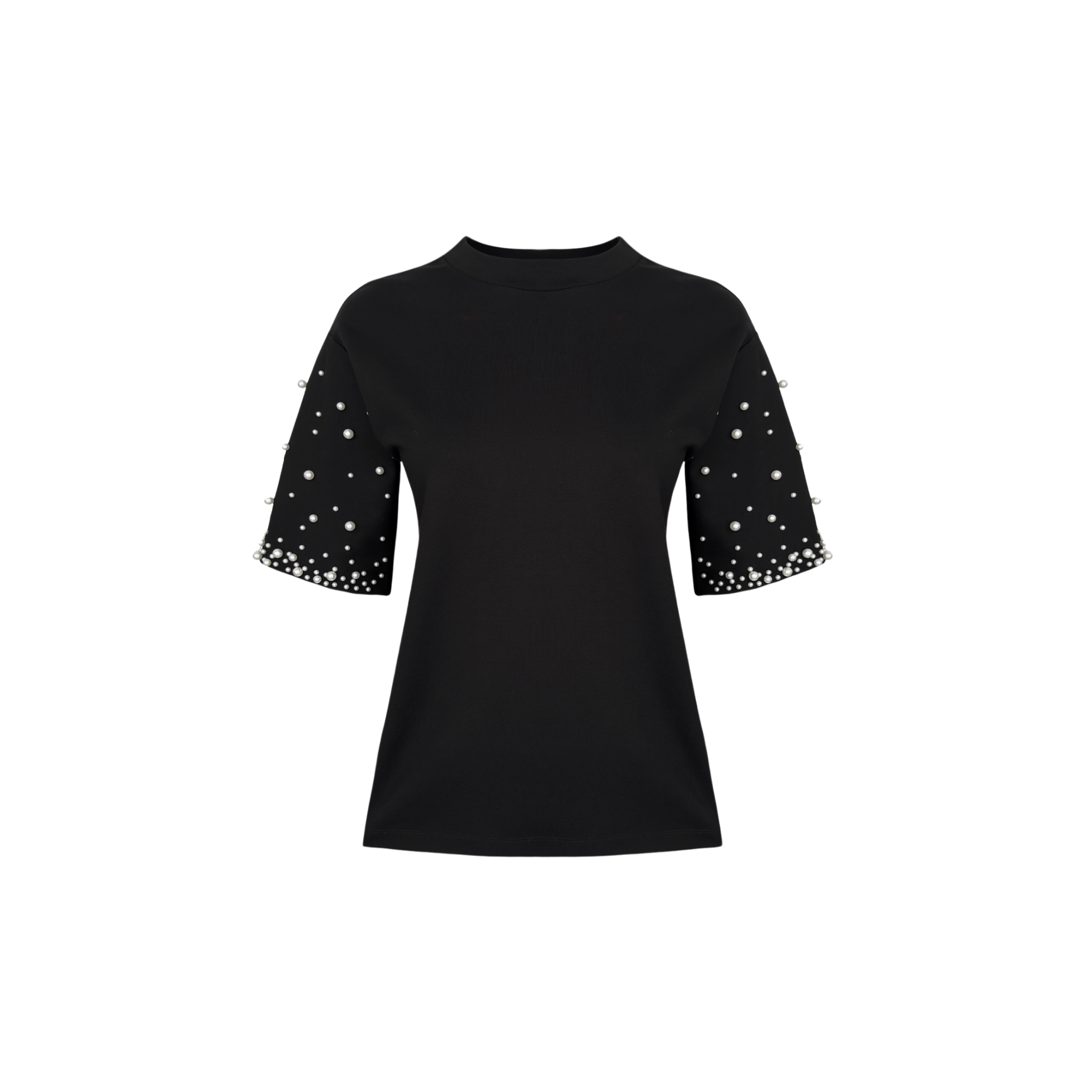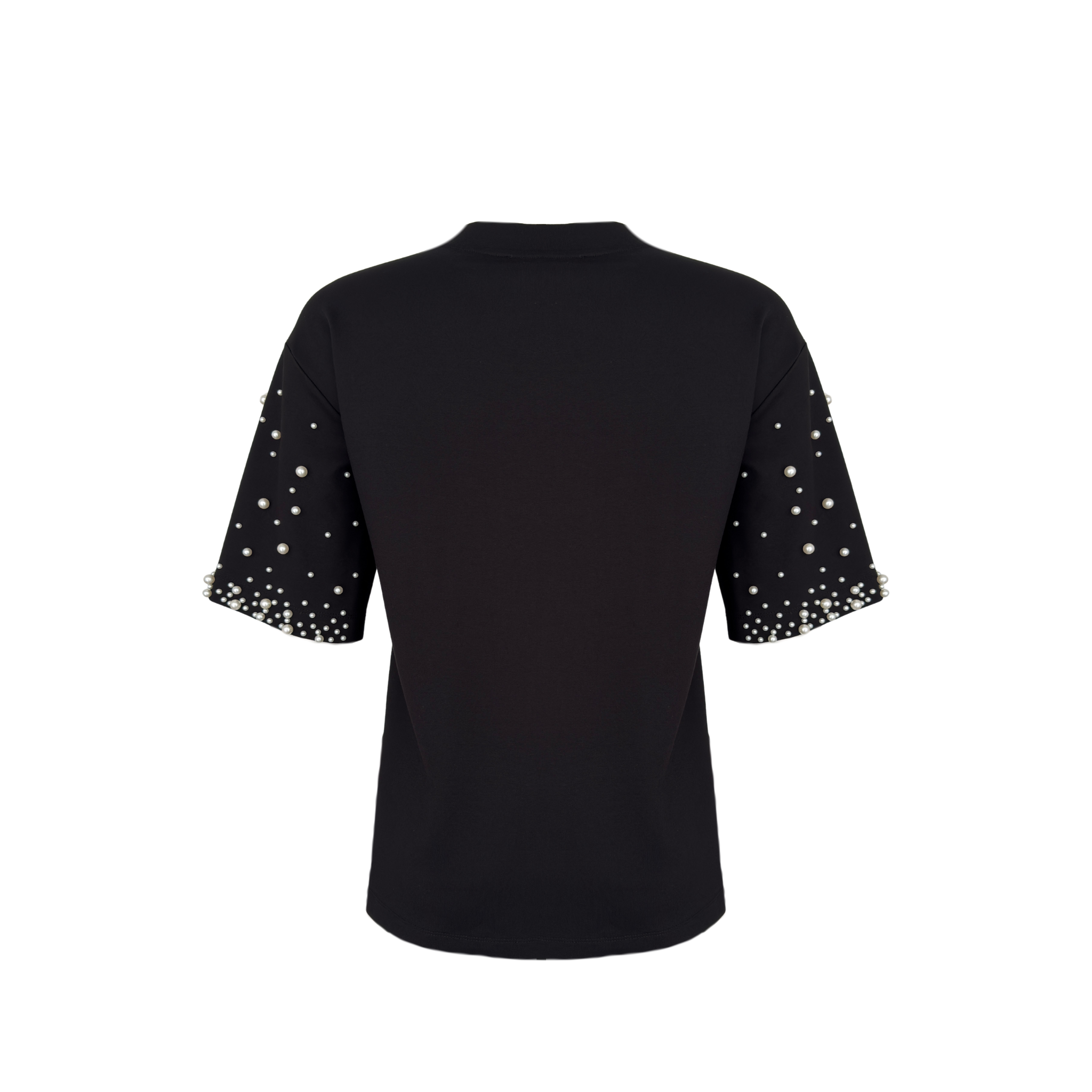 BLACK RAYON BLOUSE WITH PEARL DETAIL ON SLEEVES