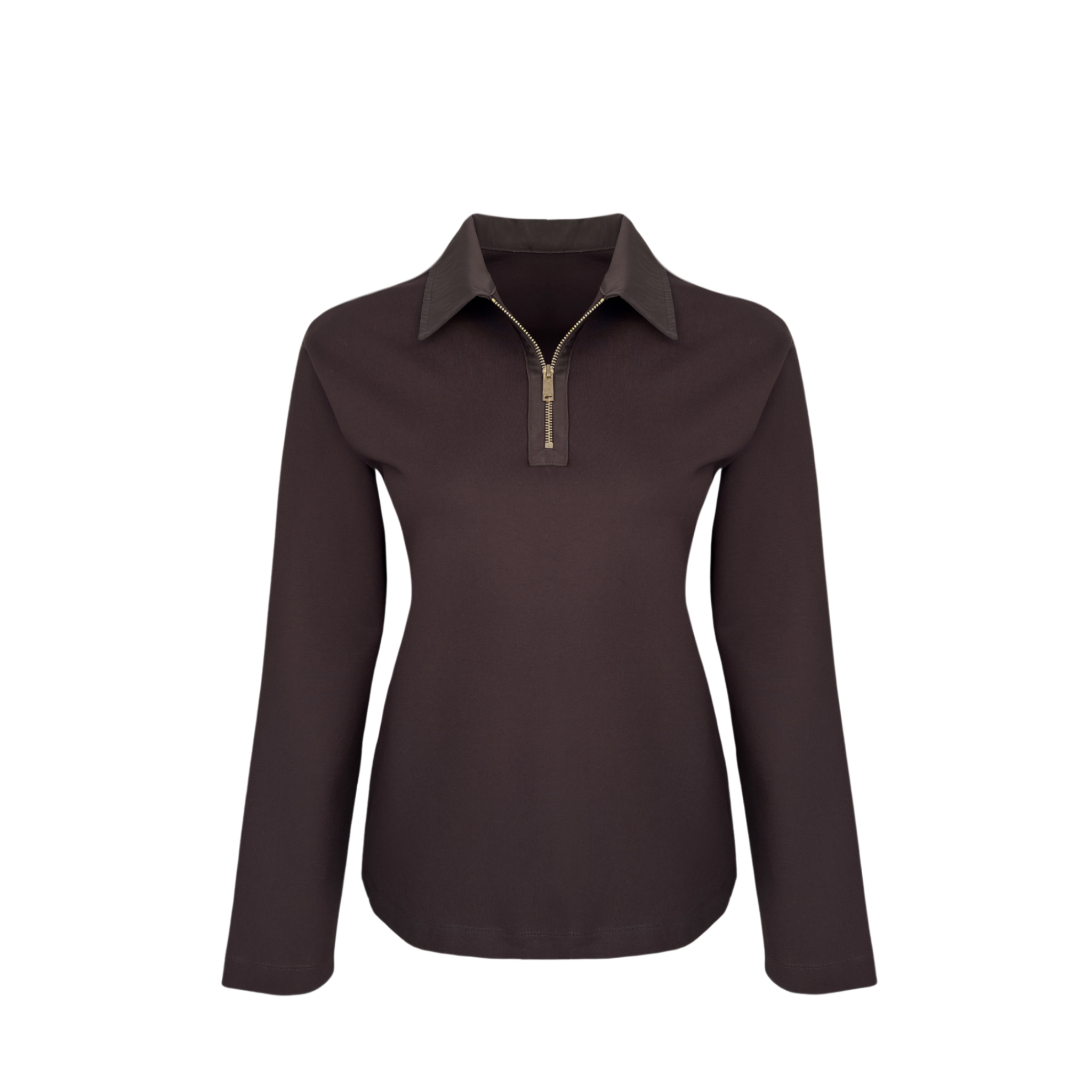 MIXED FABRIC SWEATSHIRT WITH ZIPPERED COLLAR, BROWN.