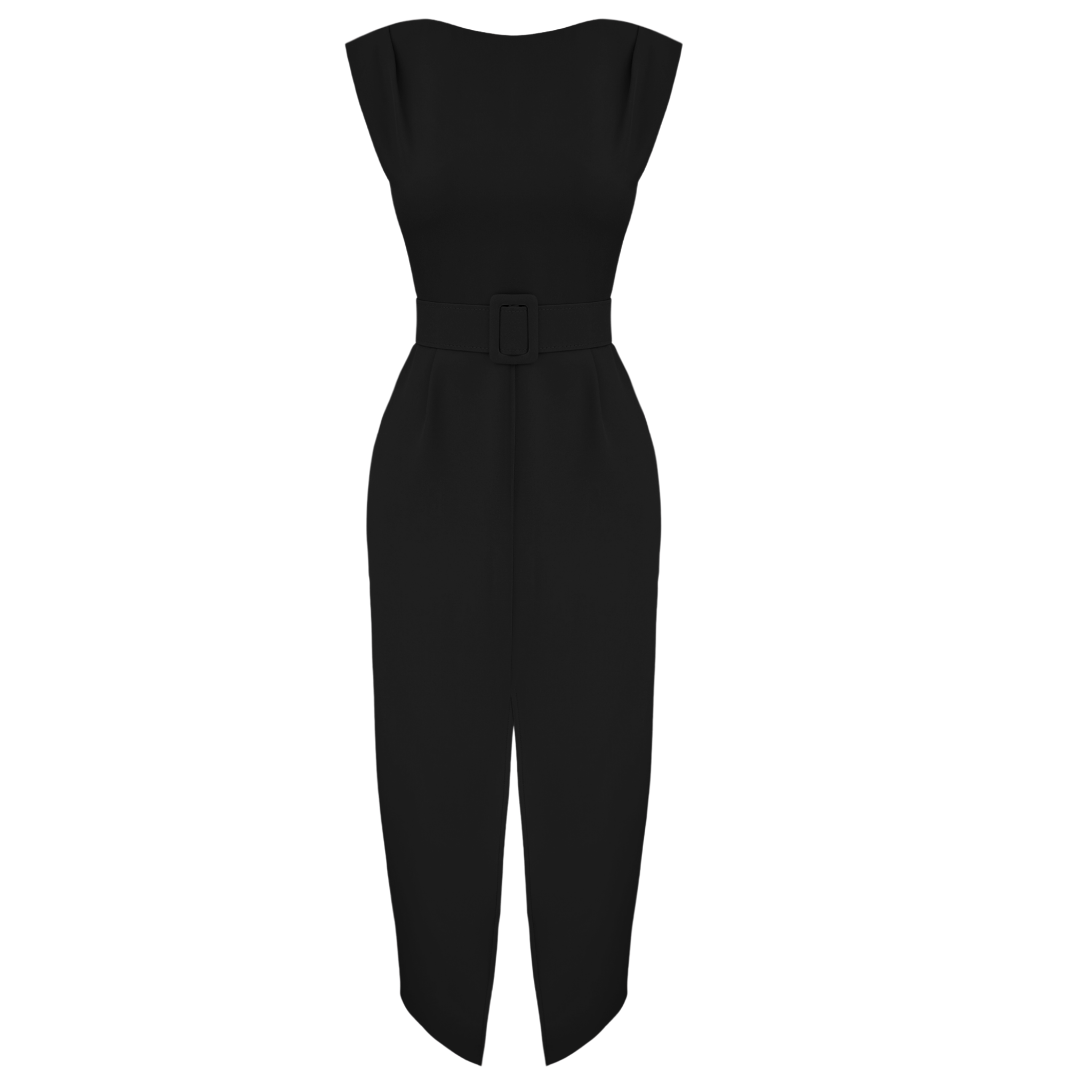 فستان أسود بدون أكمام بتفاصيل حزام من مادة إيفا