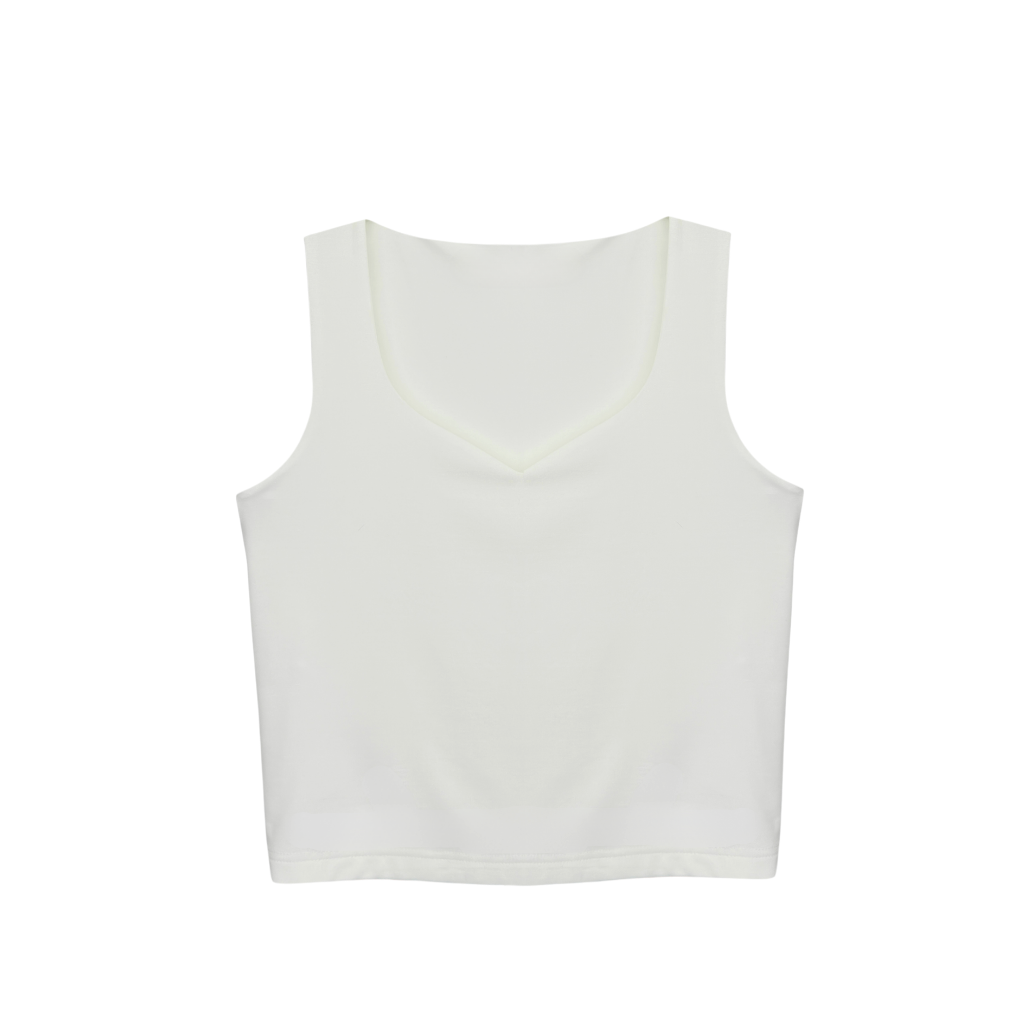 بلوزة رايون مزدوجة الطبقات بياقة على شكل قلب باللون الأبيض