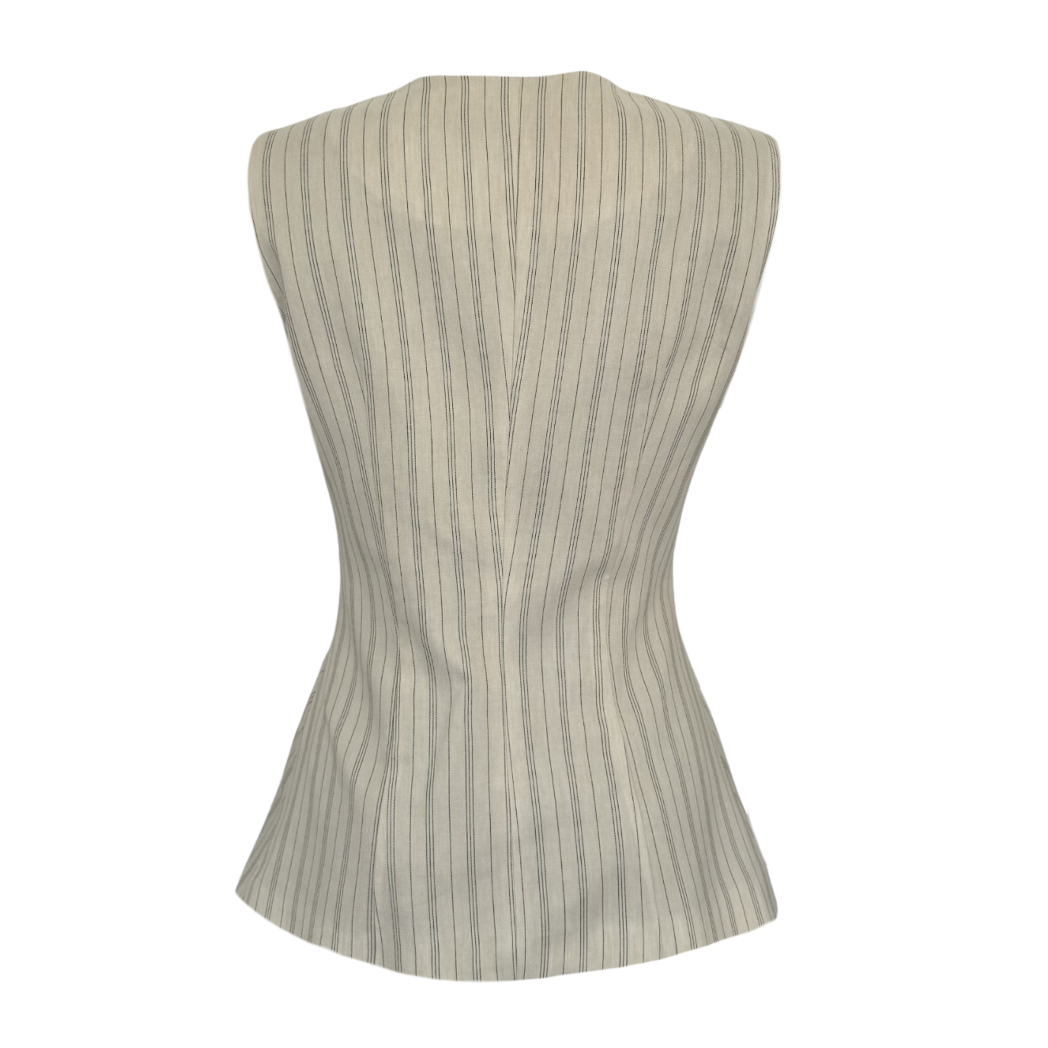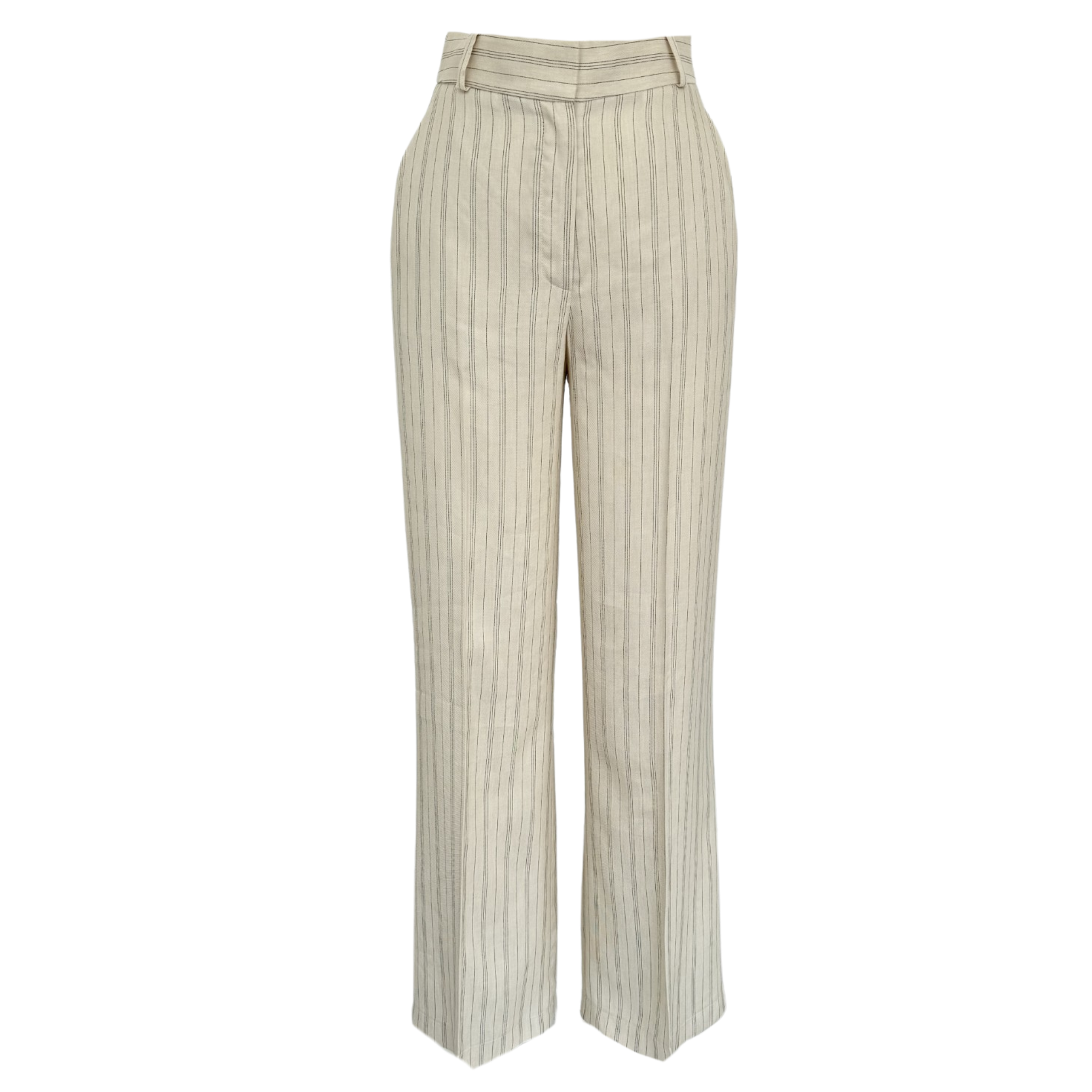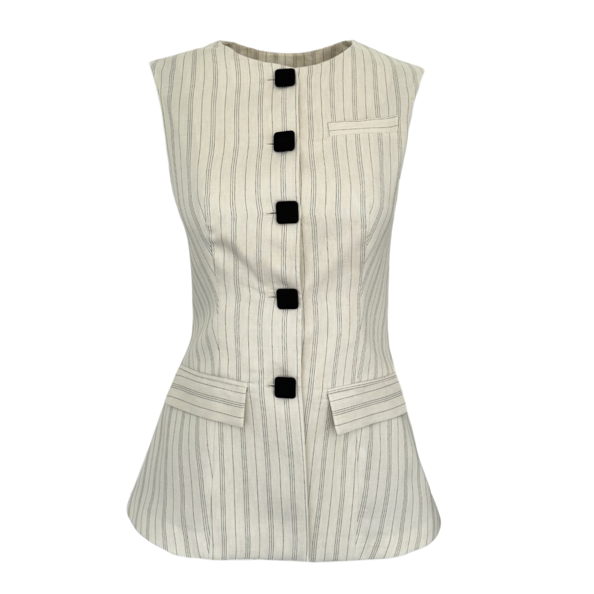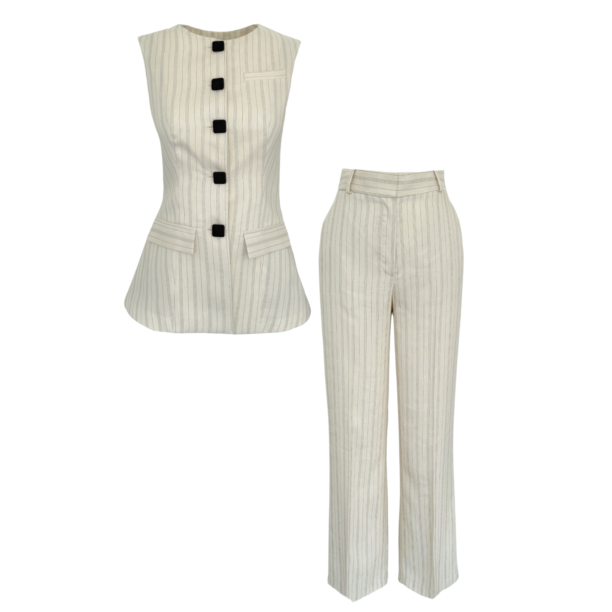 بدلة مخططة من الكتان بنسبة 100% مع أزرار متباينة اللون بيج