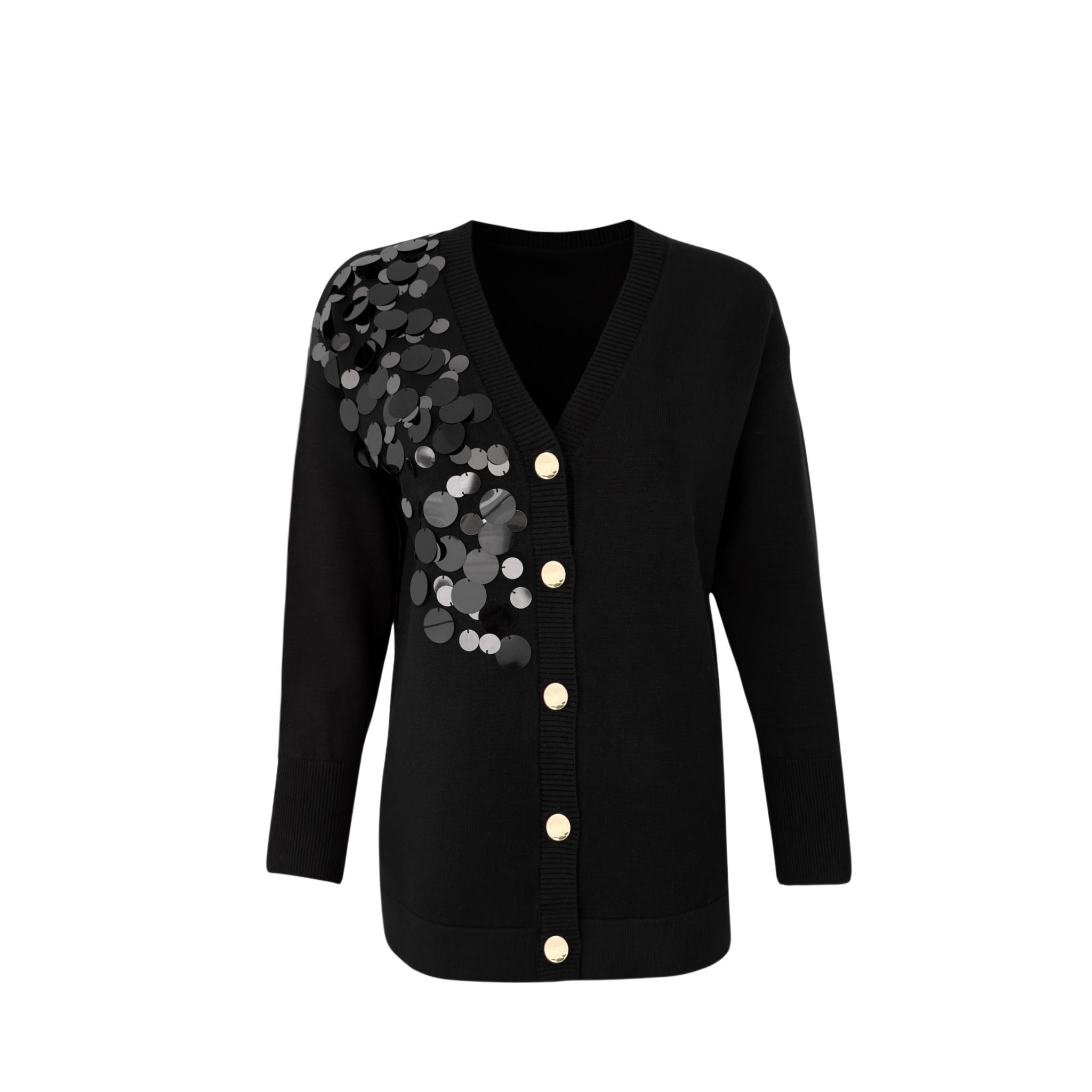 PAYET İŞLEMELİ V YAKA TRİKO CEKET SİYAH