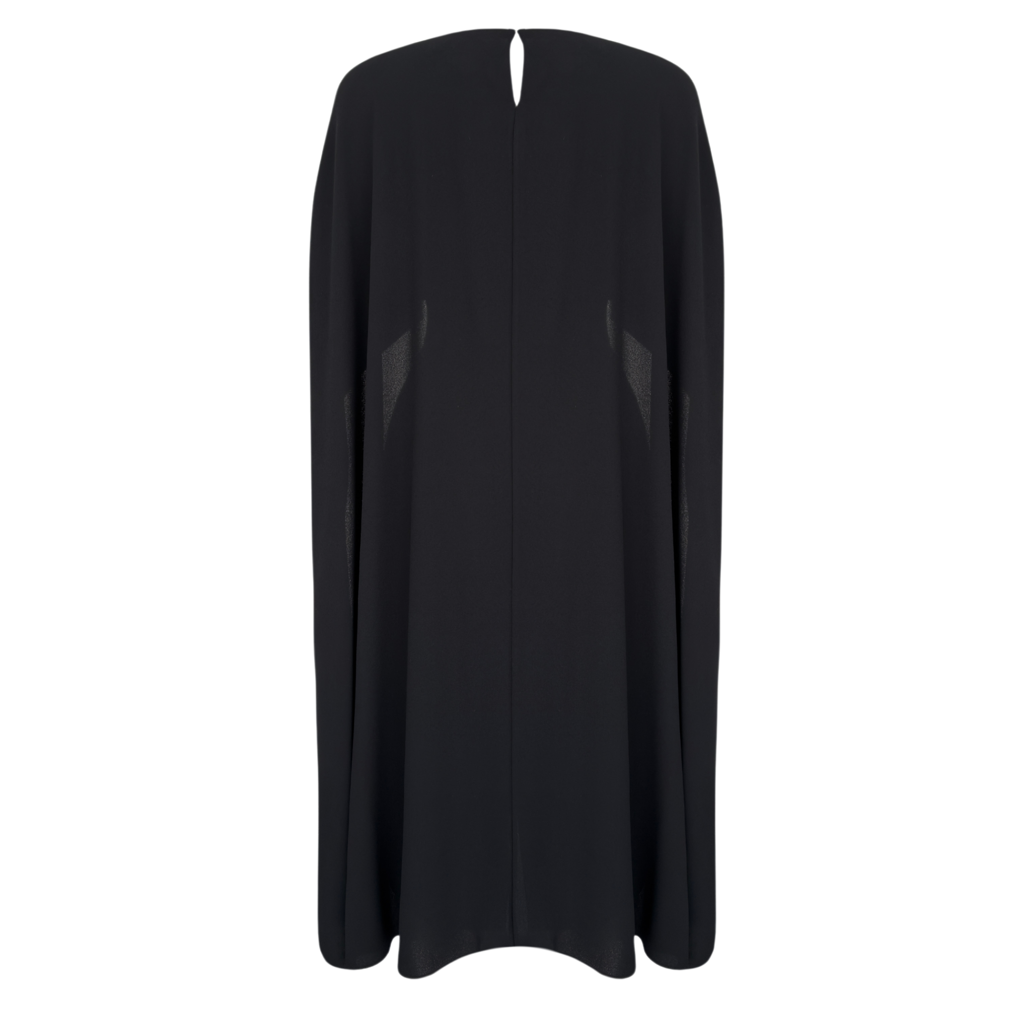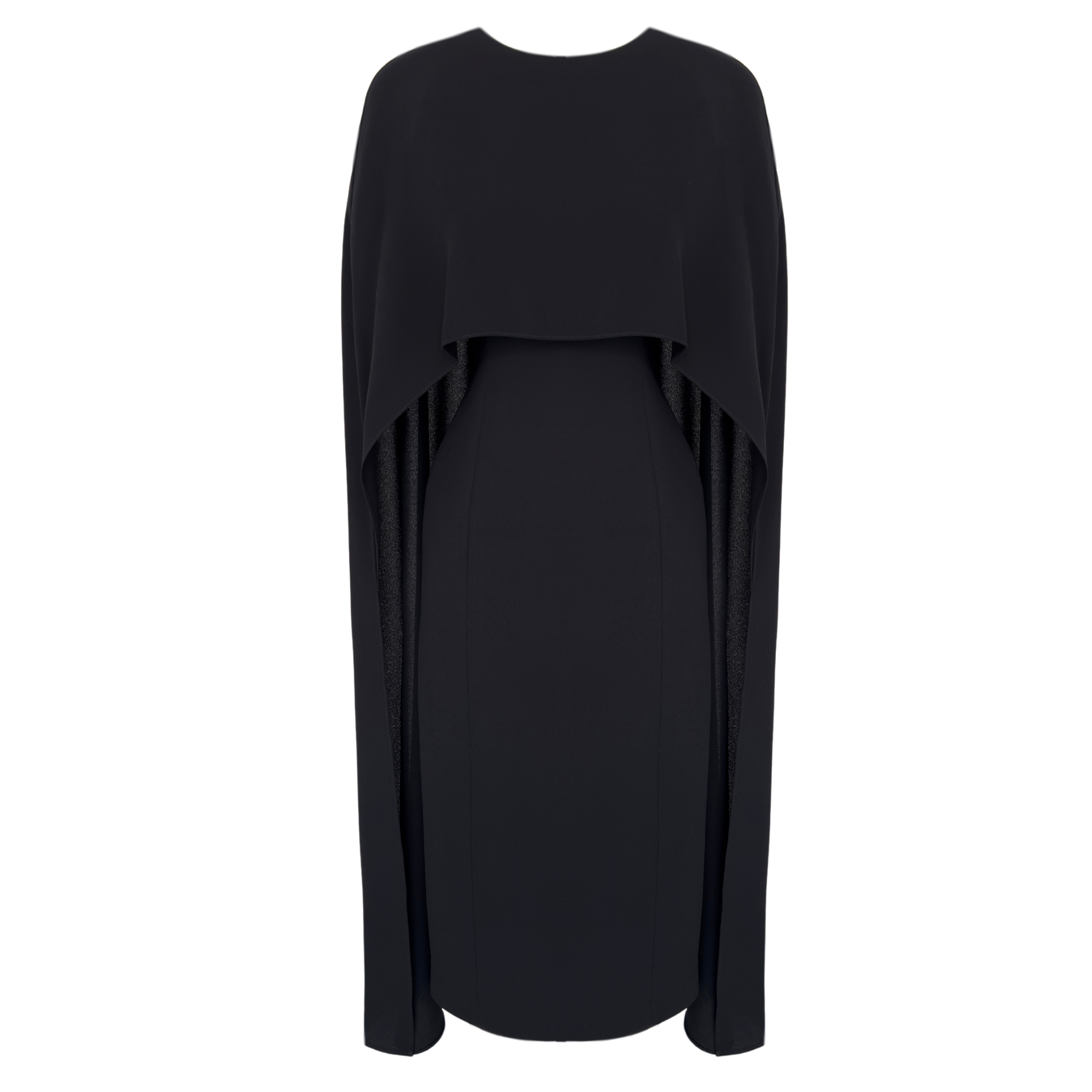 PENCIL DRESS WITH CAPE DETAIL, BLACK.