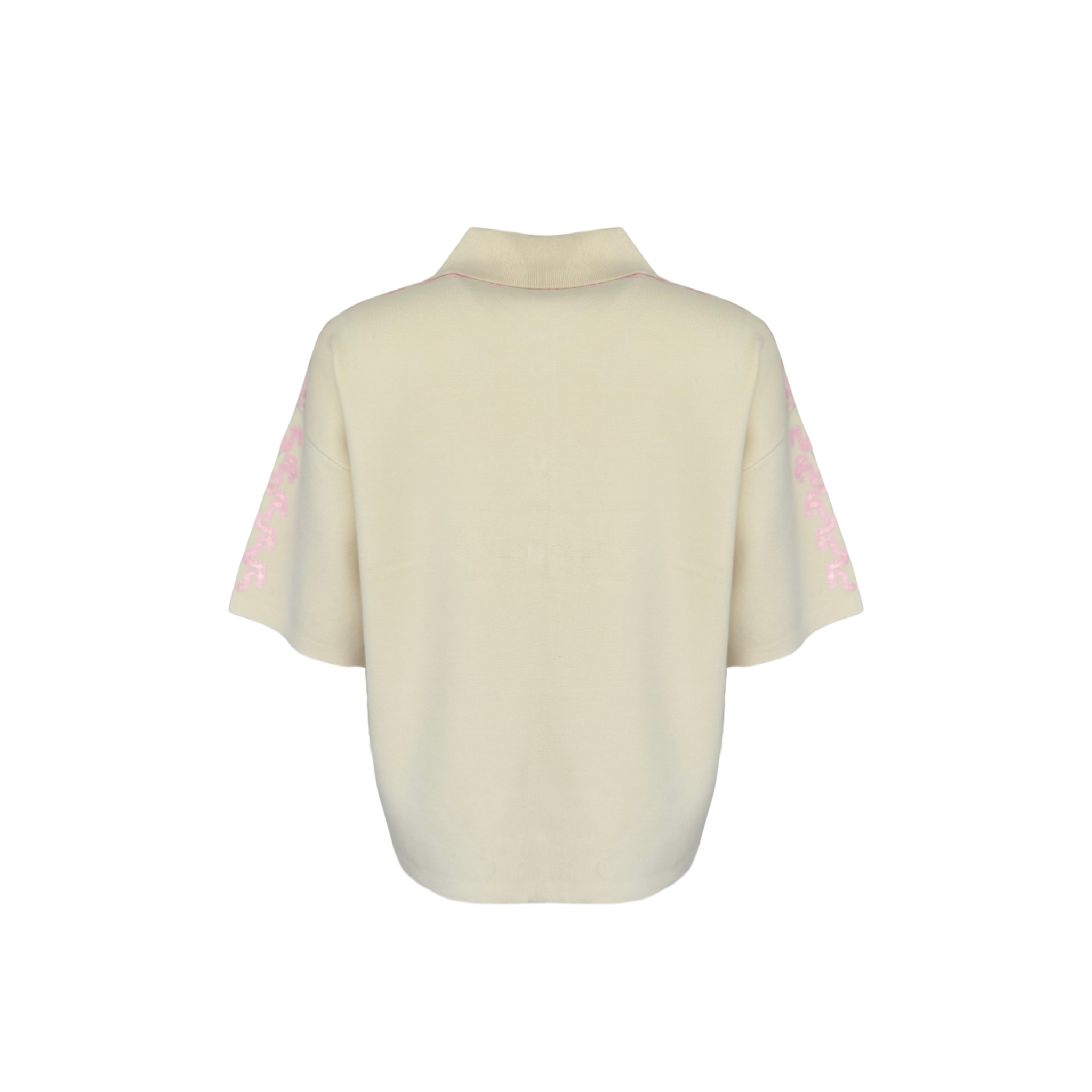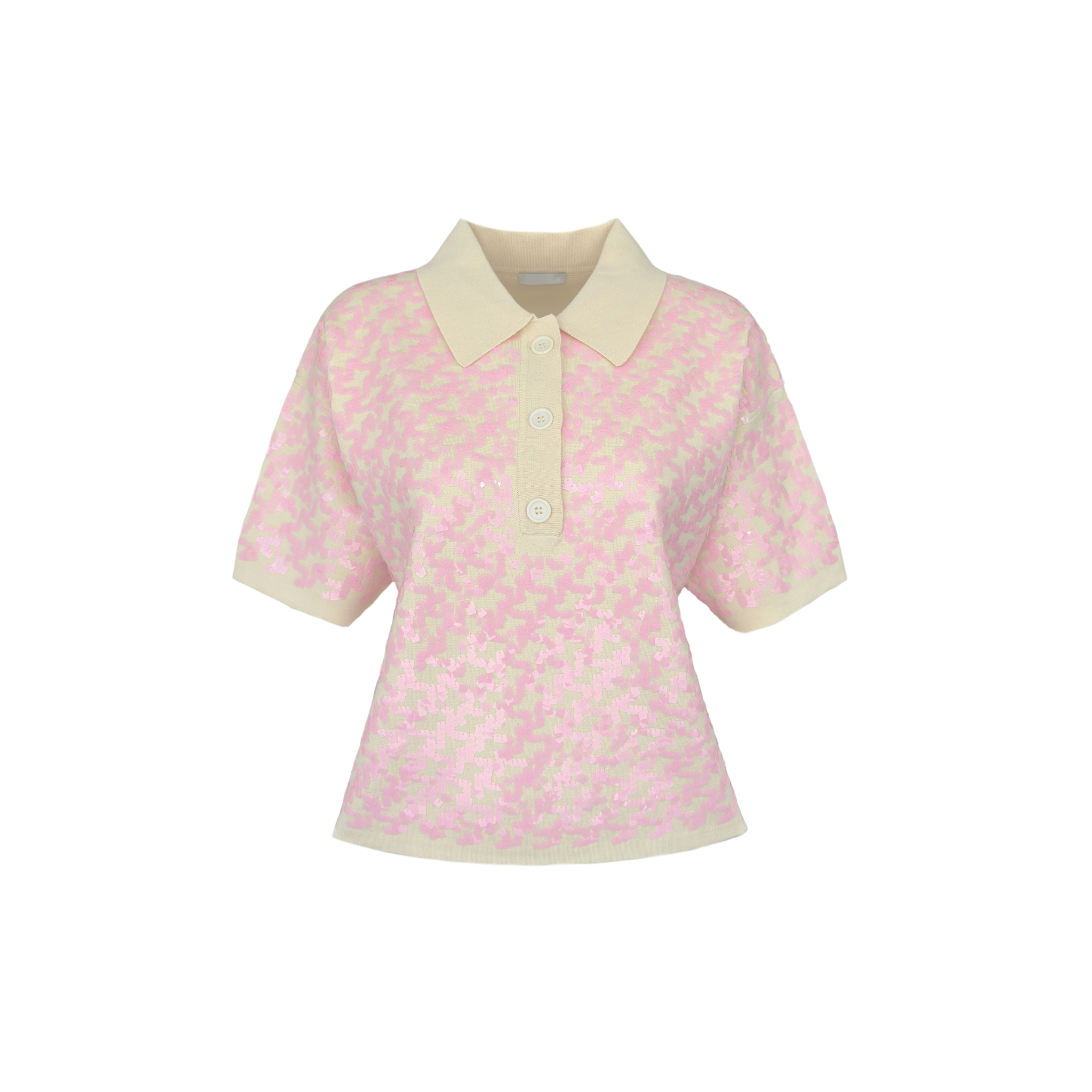 قميص بولو مطرز بالترتر، مقاس كبير، محبوك، إكرو