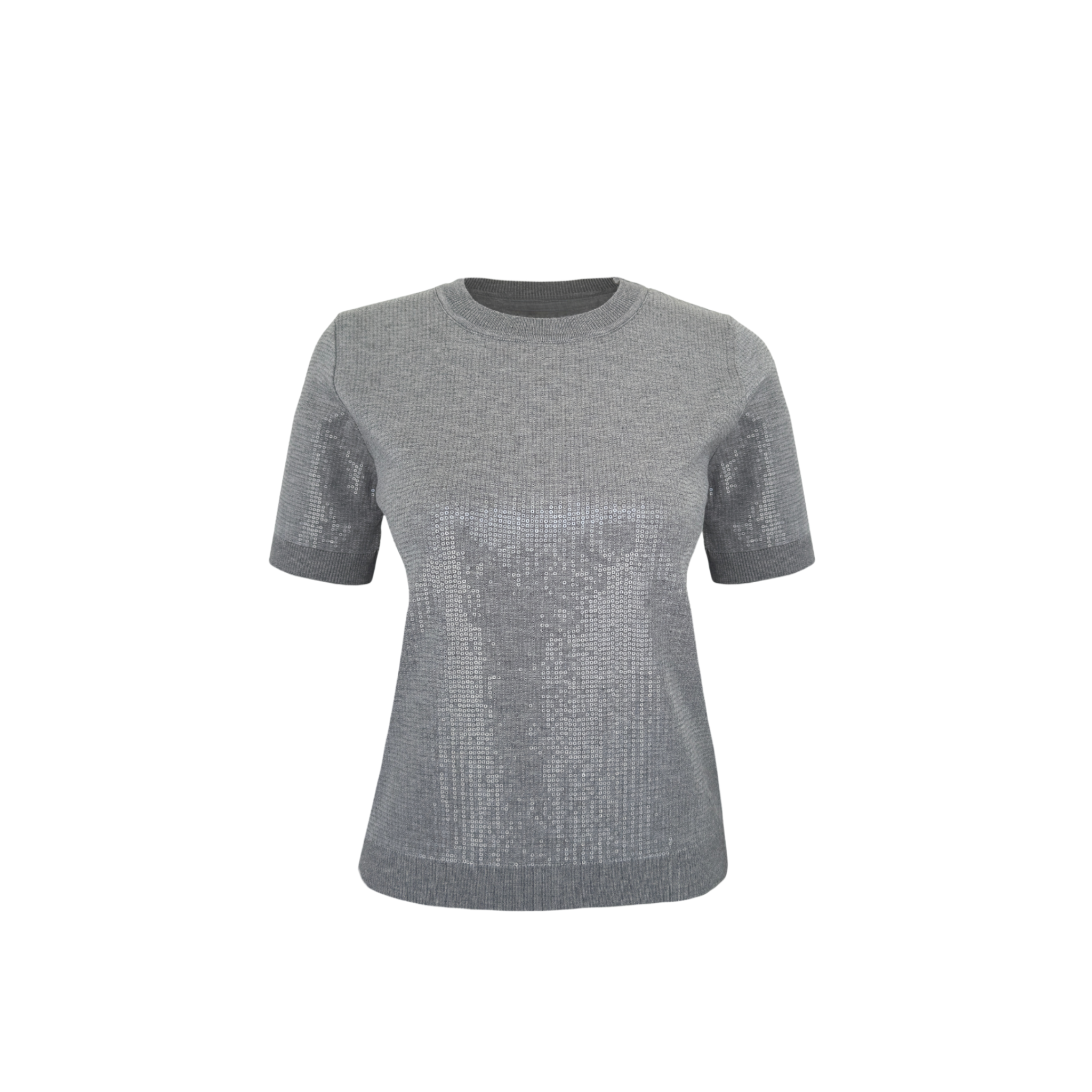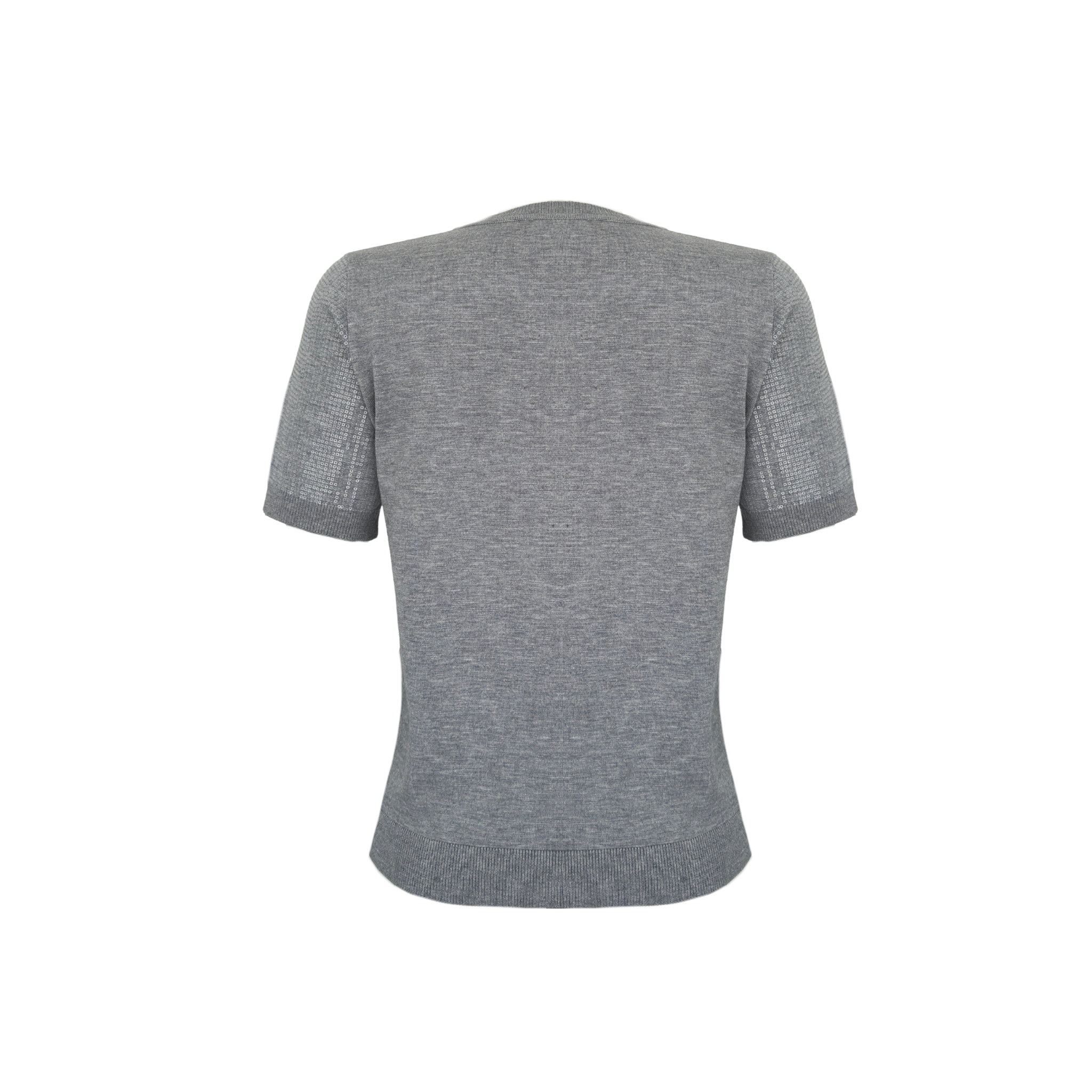 سترة محبوكة مرصعة بالترتر وياقة دائرية باللون الرمادي