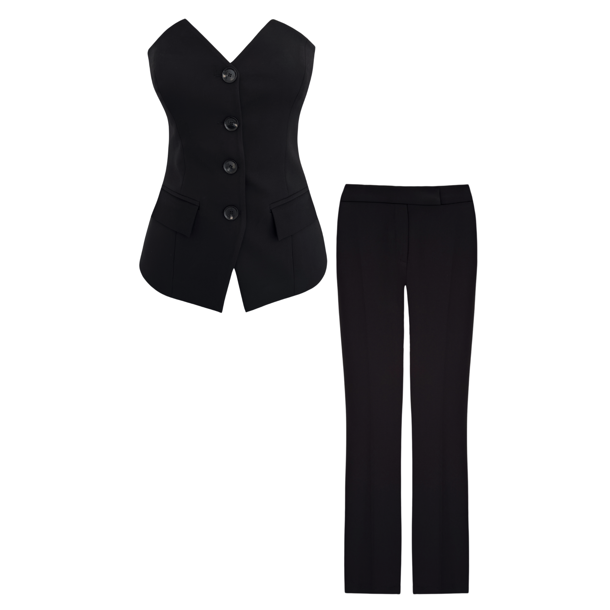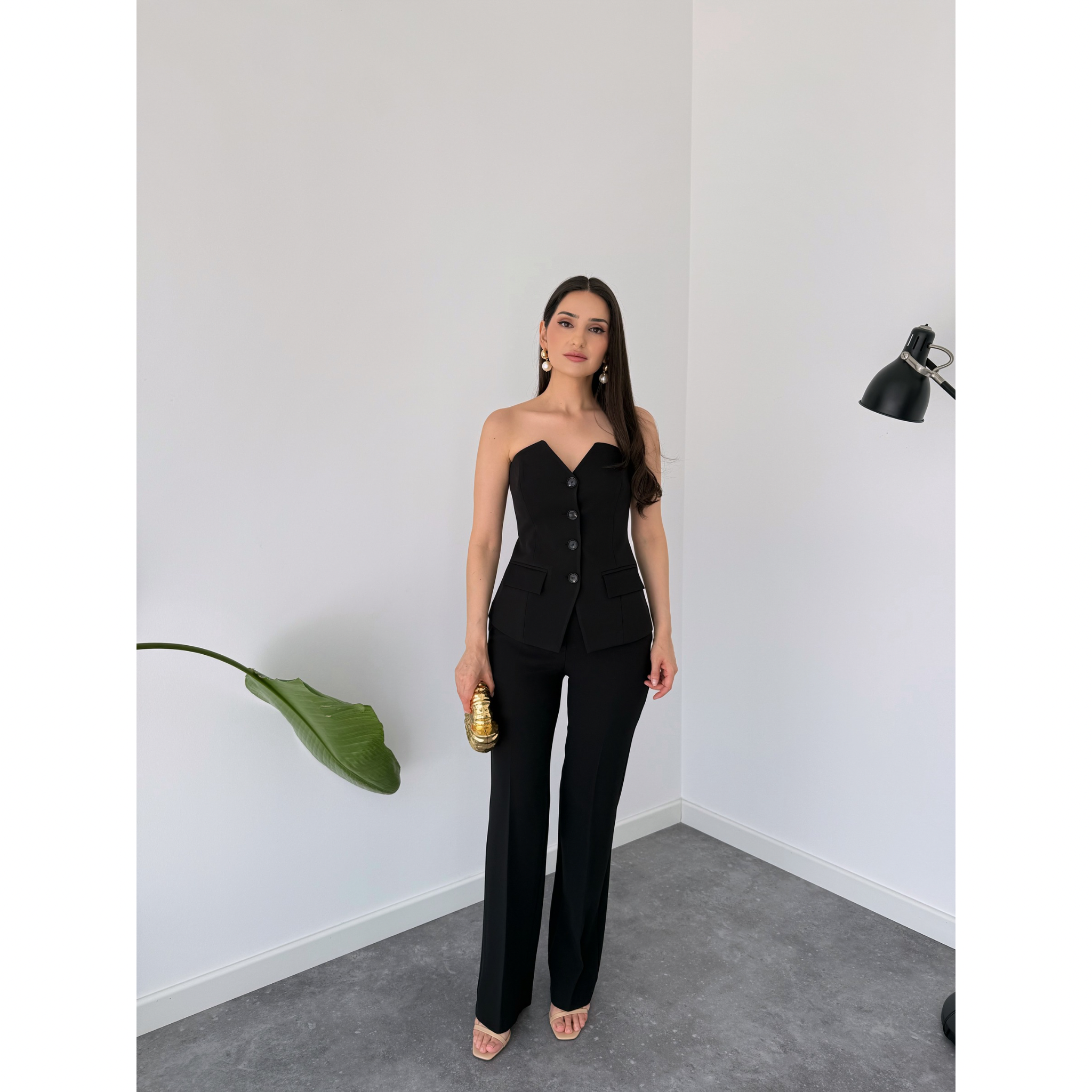 STRAPLEZ YAKA TAKIM SİYAH
