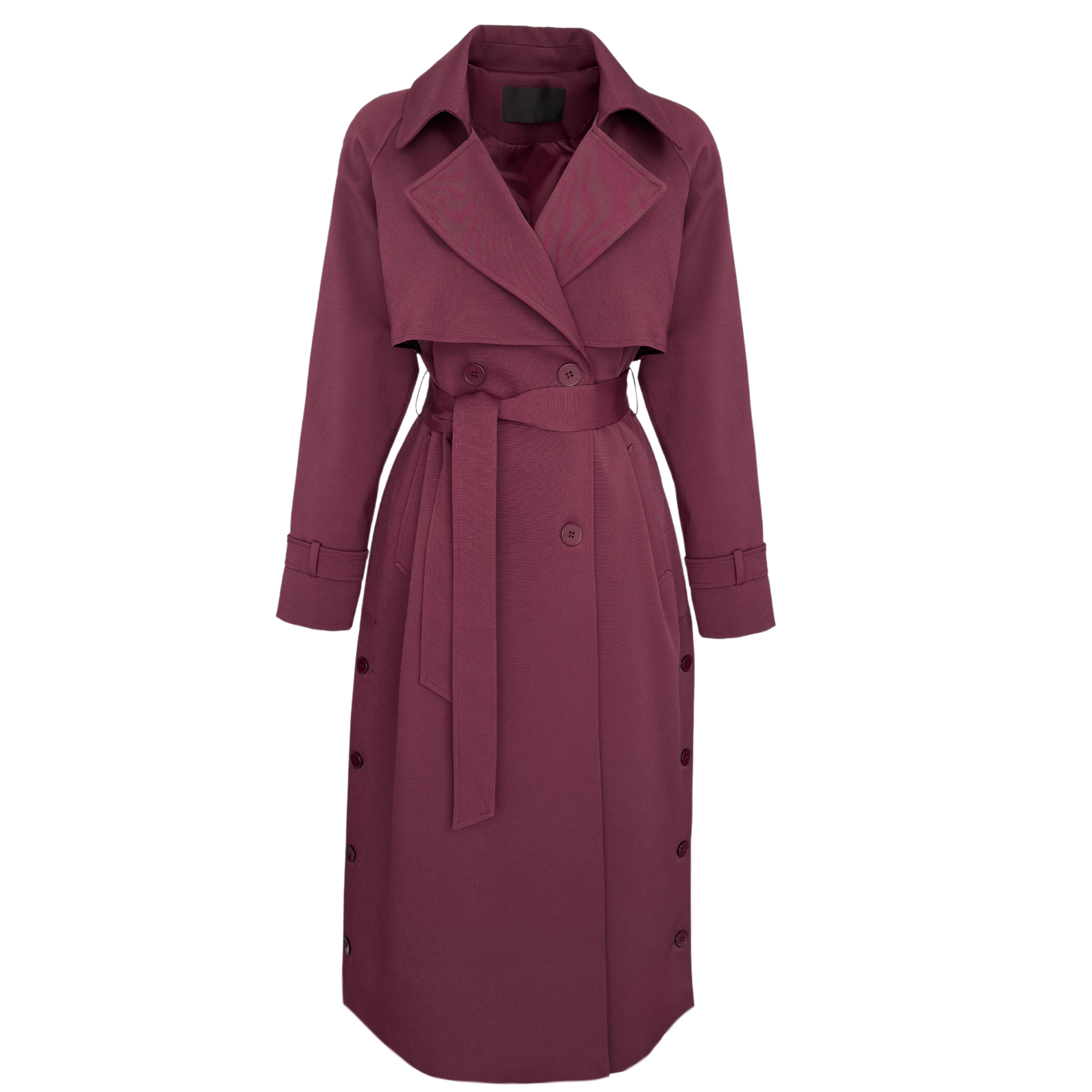 YANLARDAN DÜĞME DETAYLI KRUVAZE MODEL TRENÇKOT BORDO