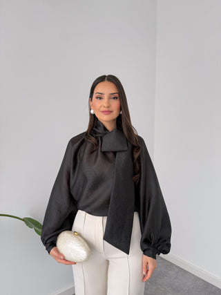 Raglan sleeve, stand-up collar, rhinestone embellished knit sweater, black.