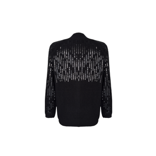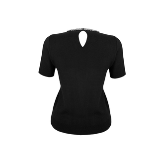 BLACK SHORT-SLEEVE KNITTED SWEATER WITH STONE EMBELLISHMENT ON THE COLLAR