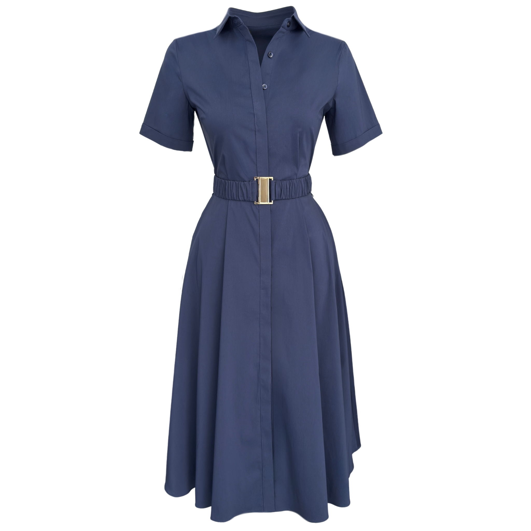 NAVY BLUE SHIRT DRESS WITH BELT DETAIL