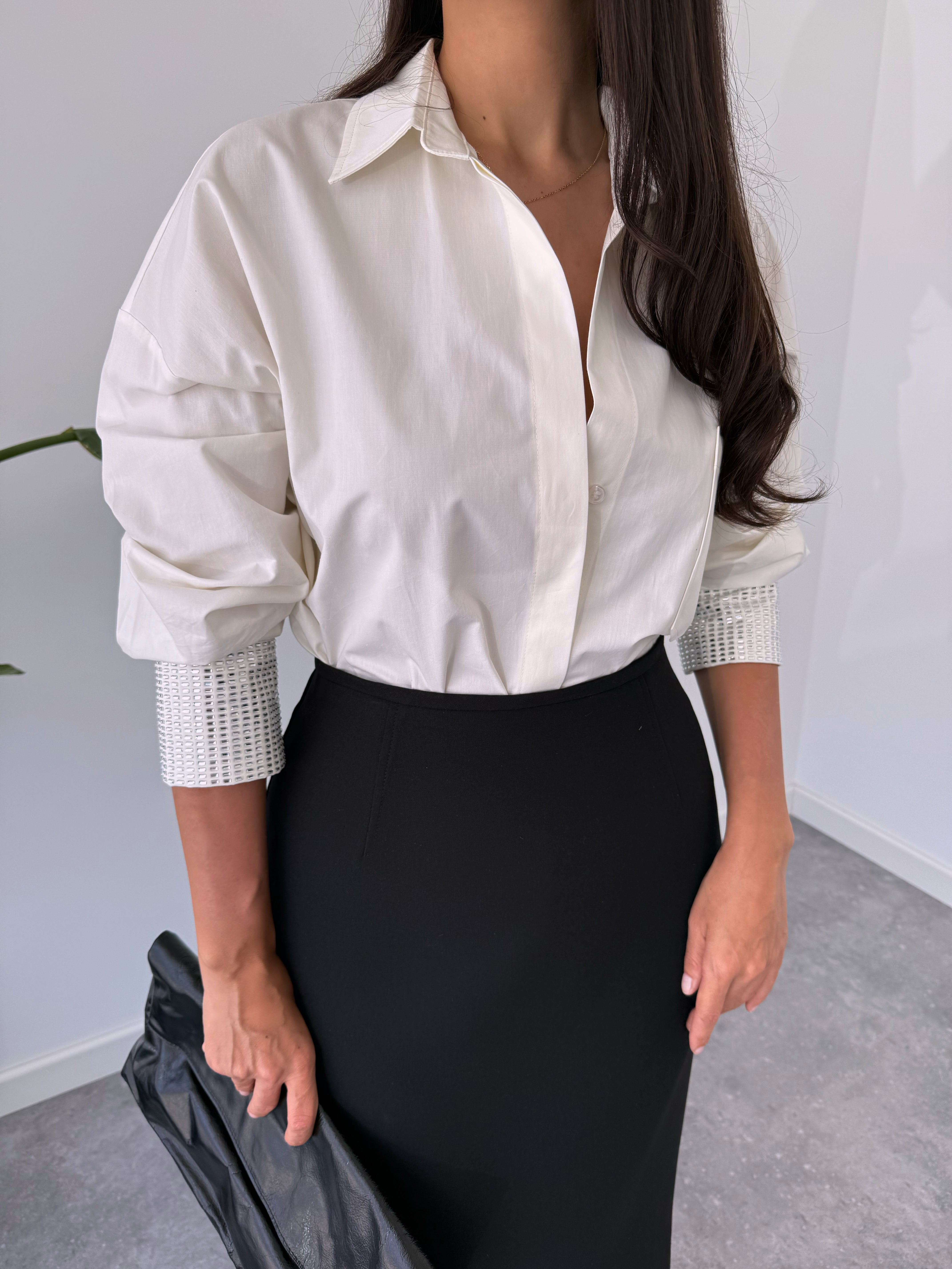 قميص كبير الحجم بأكمام منفصلة بالحجر، إيكو