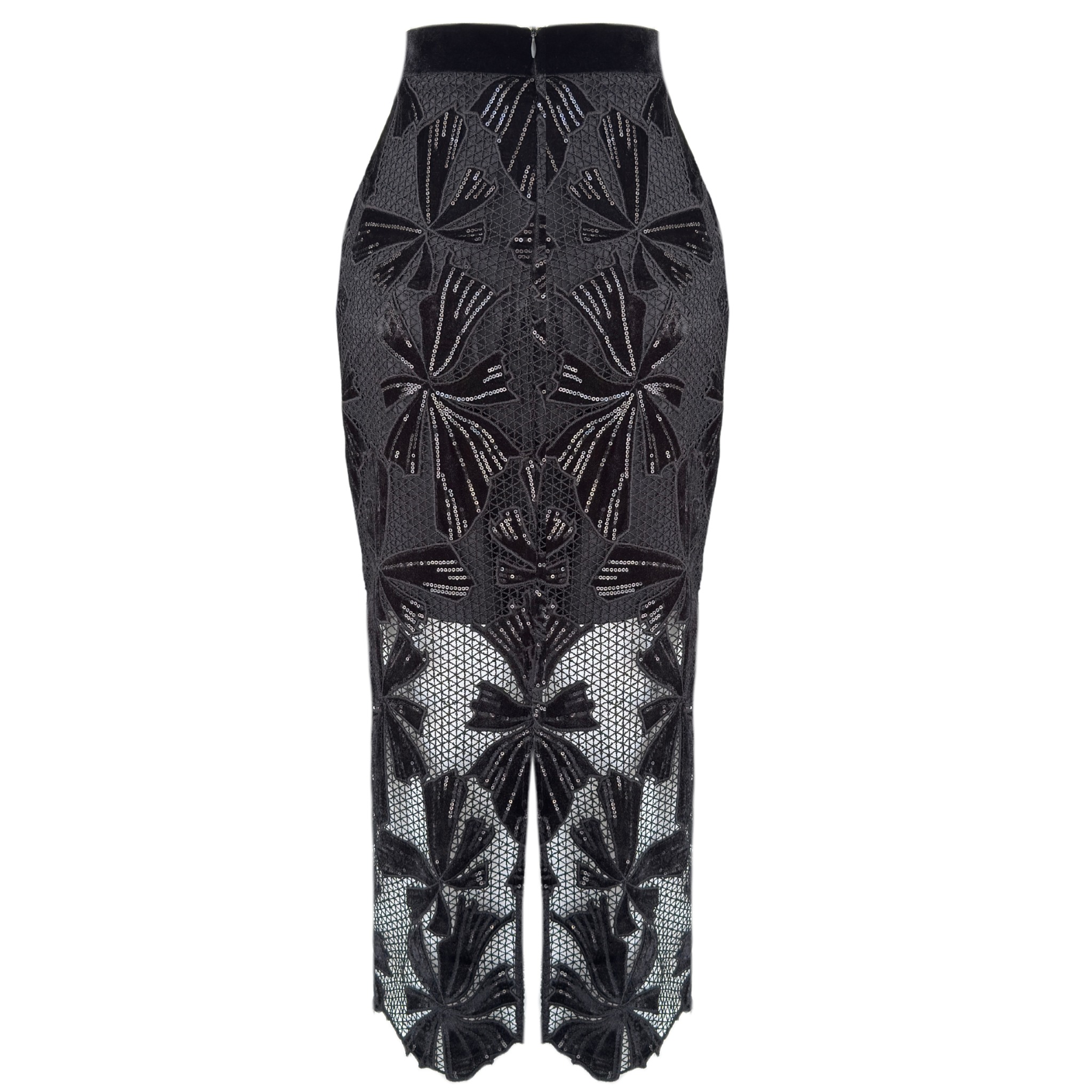 SEQUINED LACE PENCIL SKIRT