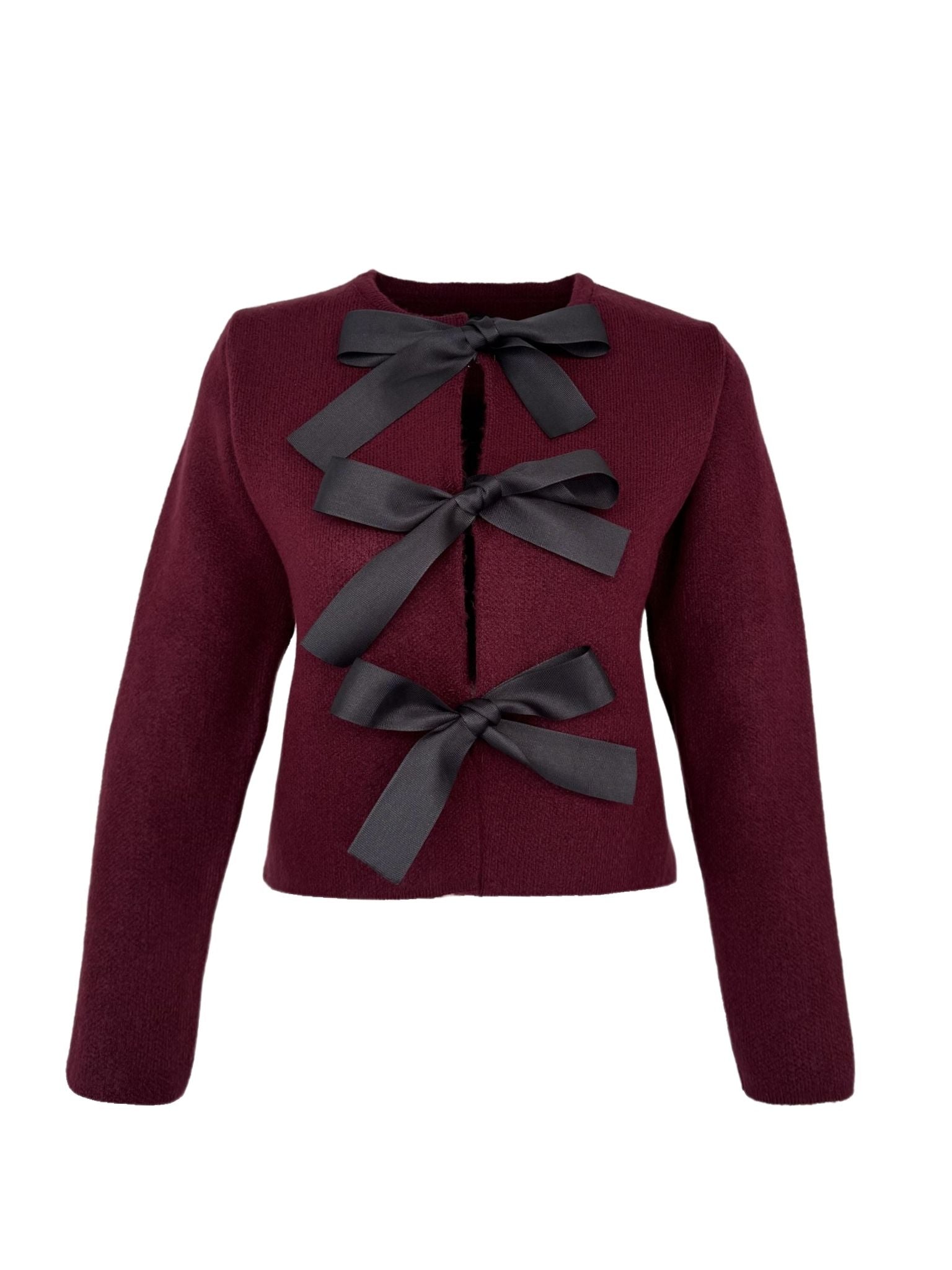 سترة محبوكة بتفاصيل ربطة عنق، لون كستنائي