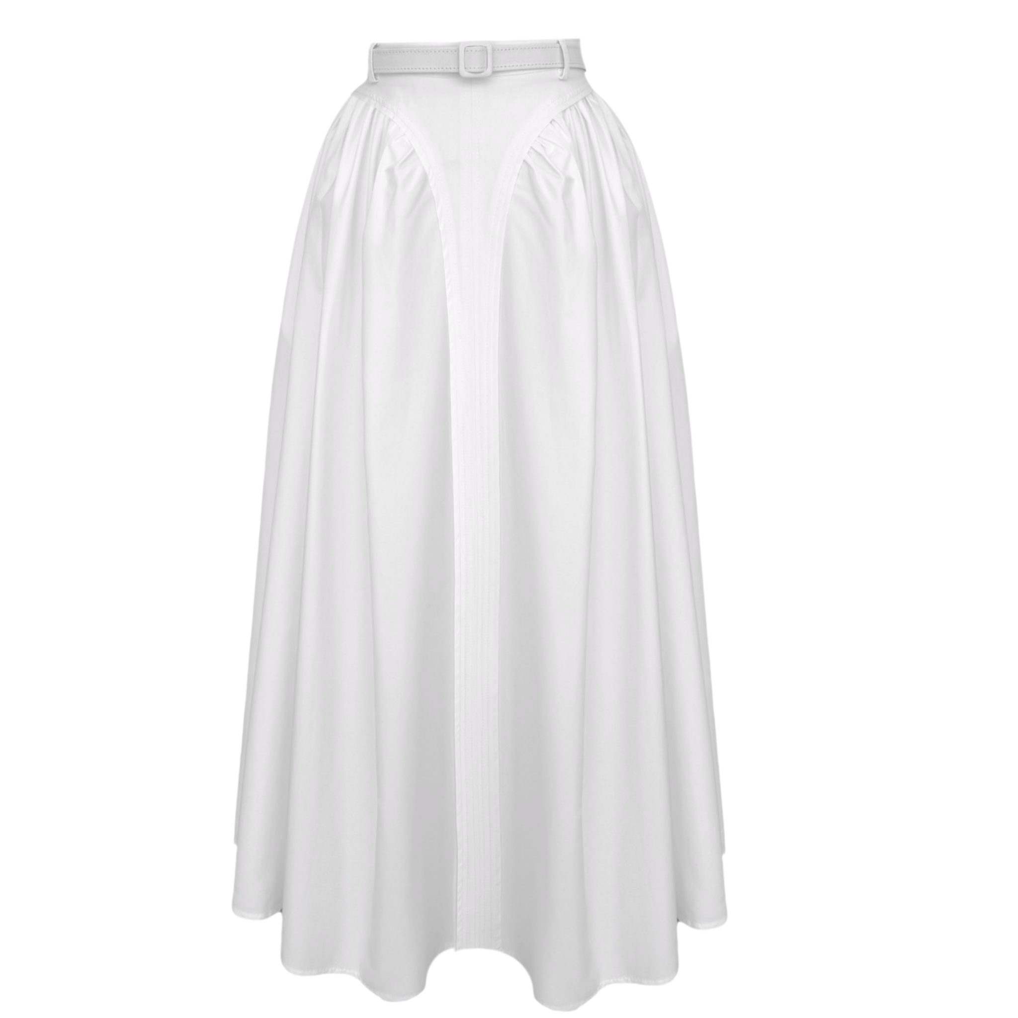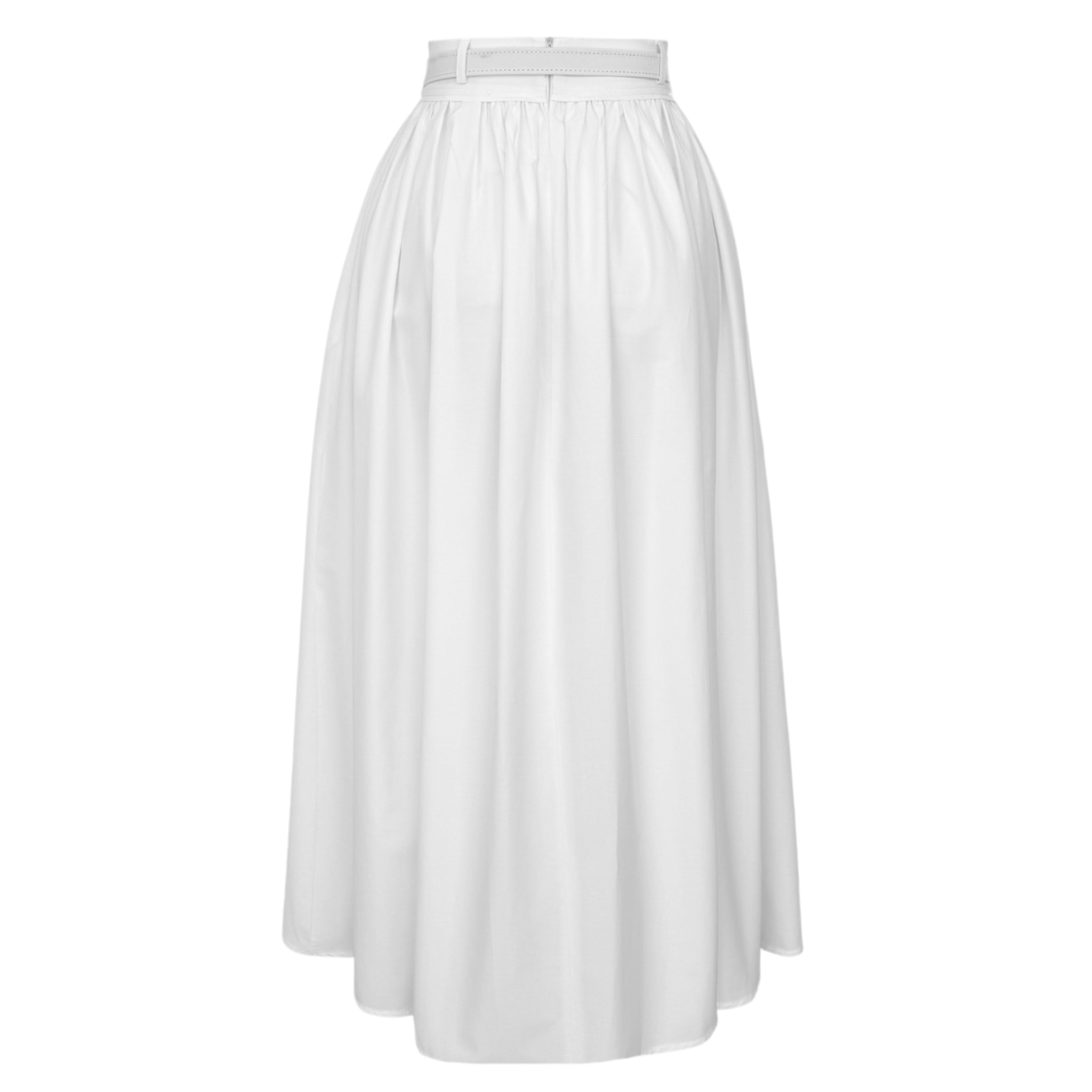 تنورة بيضاء بحزام مع تفاصيل إبراز الخصر