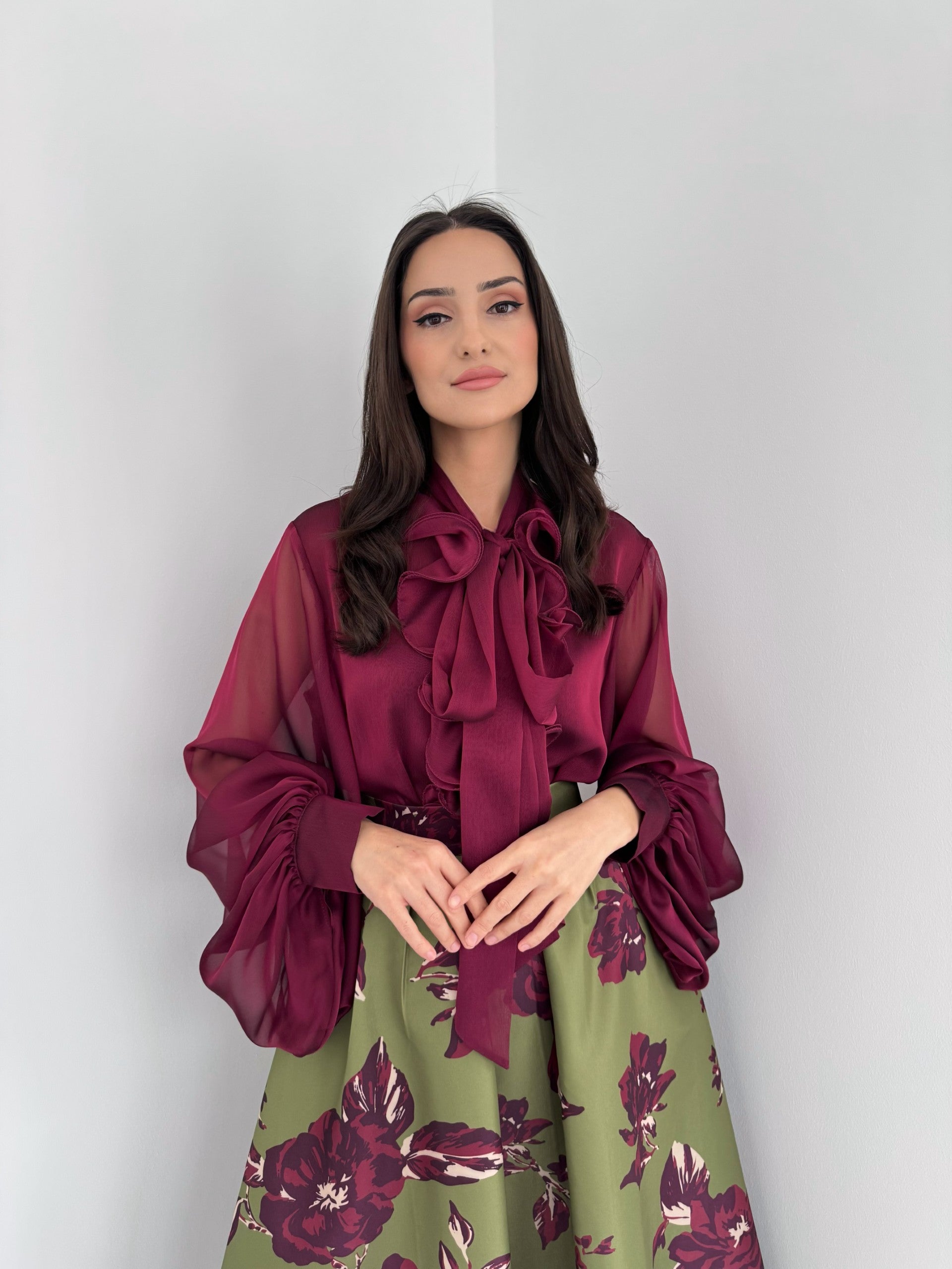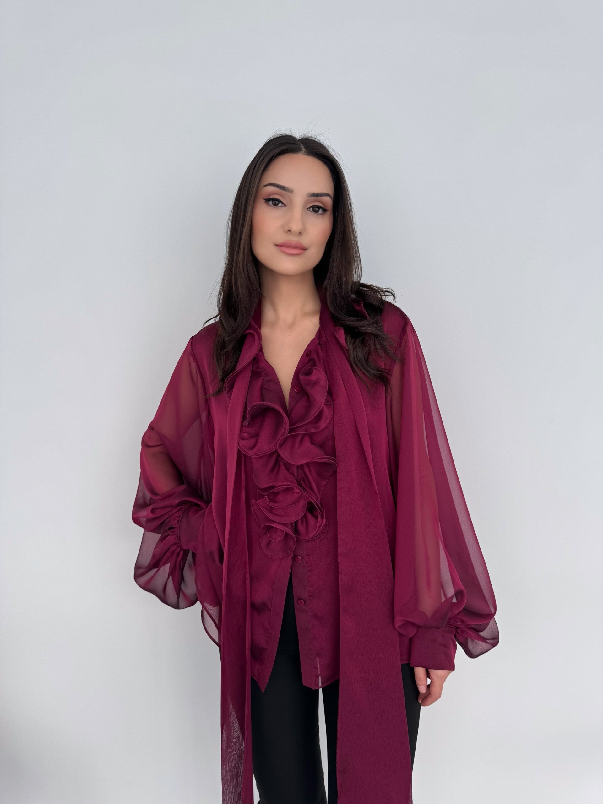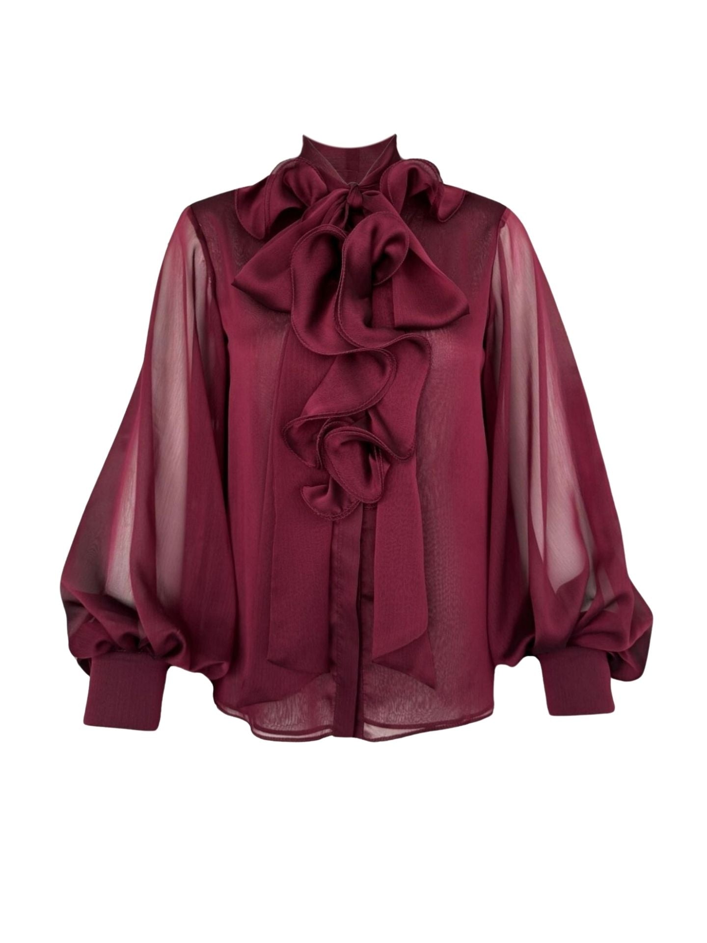 بلوزة كارلوتا بتصميم شفاف باللون الكستنائي