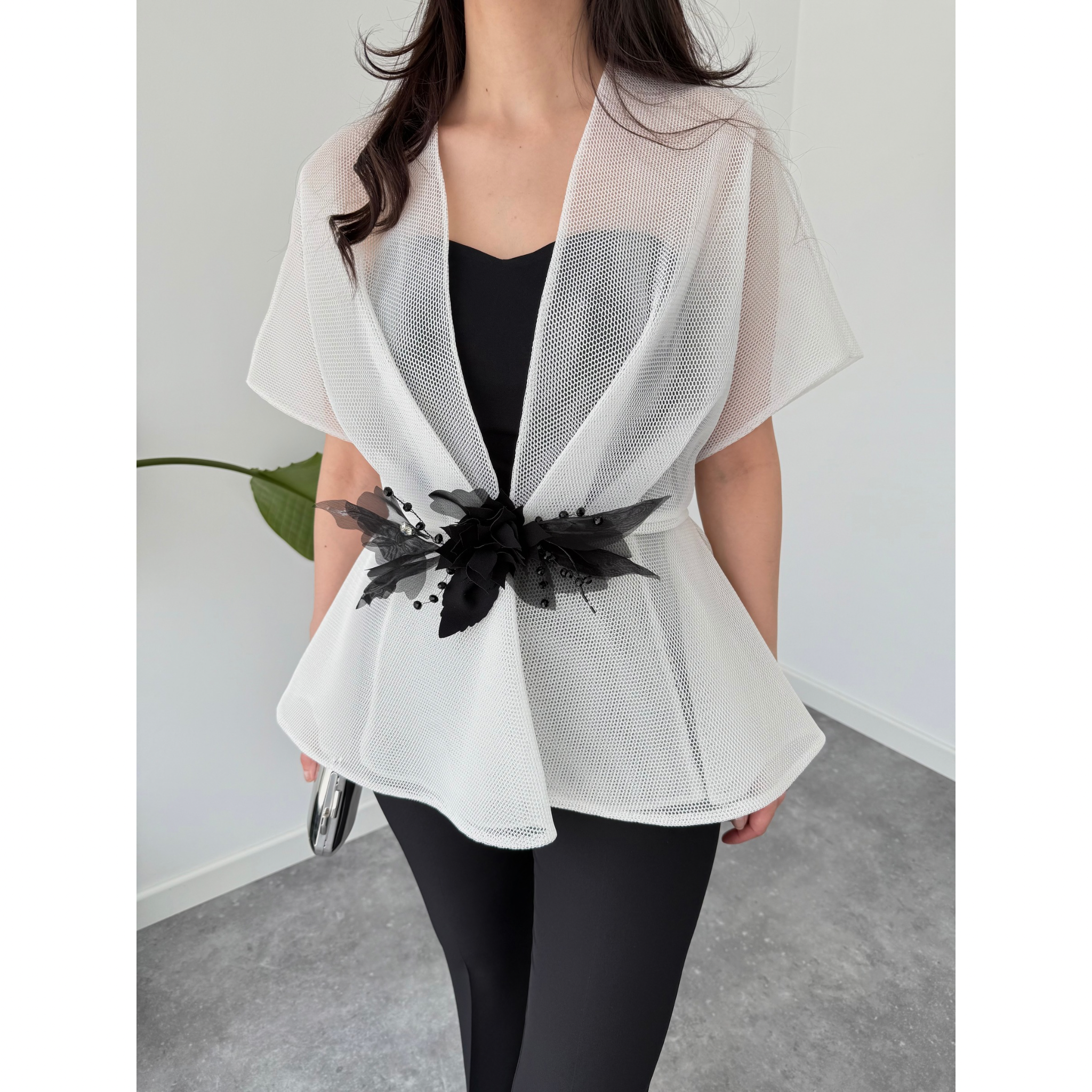 جاكيت شفاف مع إكسسوارات زهرية، أبيض
