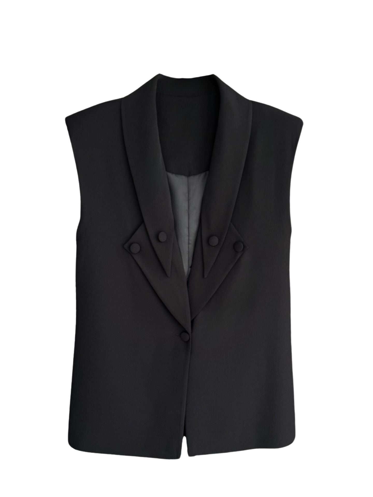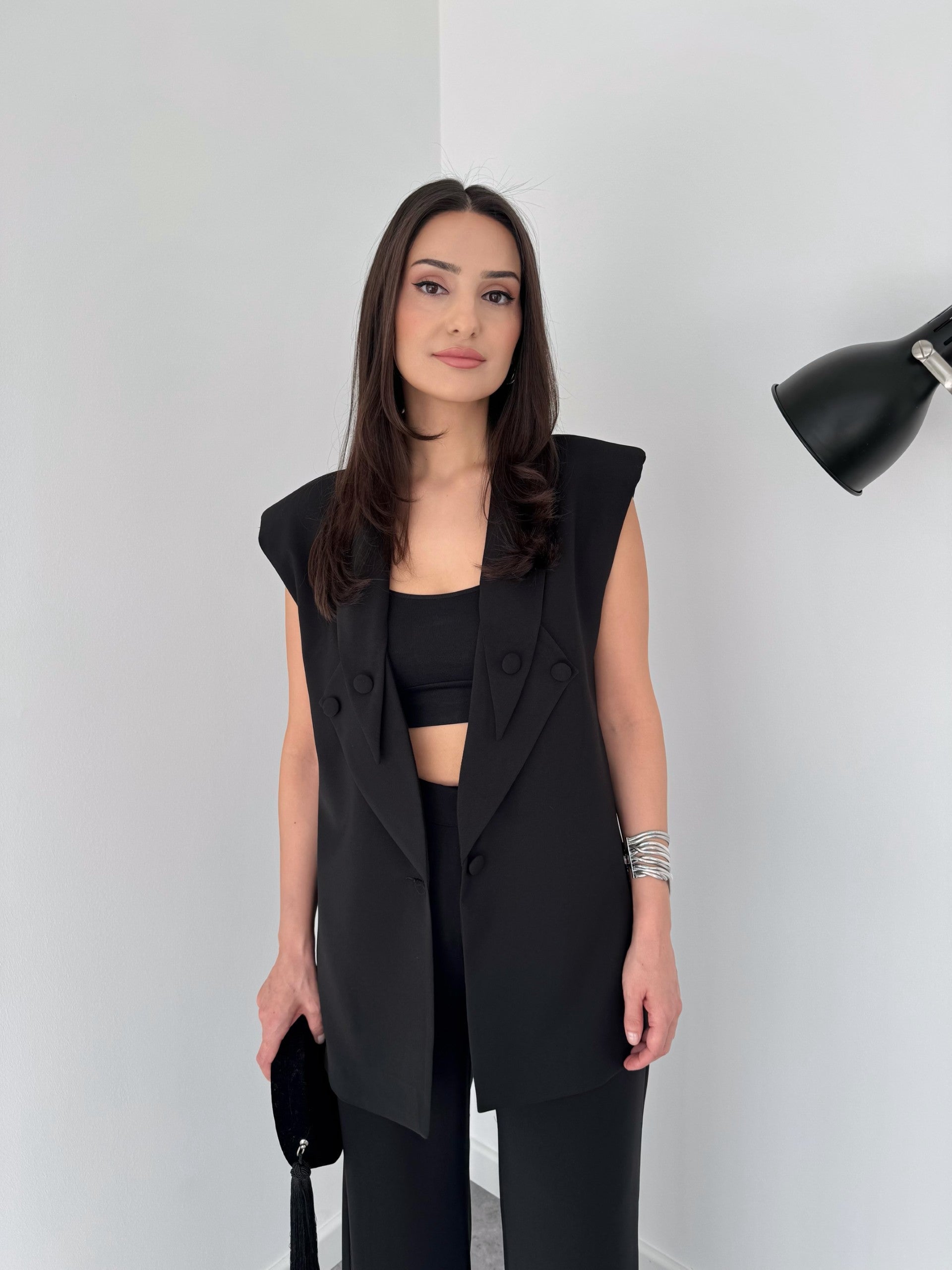 Sezonun yelek Trendine yeni bir soluk. Alışılmışın dışında yaka formufarkınızı yansıtacak detaylar arasında. يتم توصيل كابلات الصوت بالتفاصيل التي تحتاجها. Saten astarı ve vatkalı omuzları ile eksiksiz tasarım.