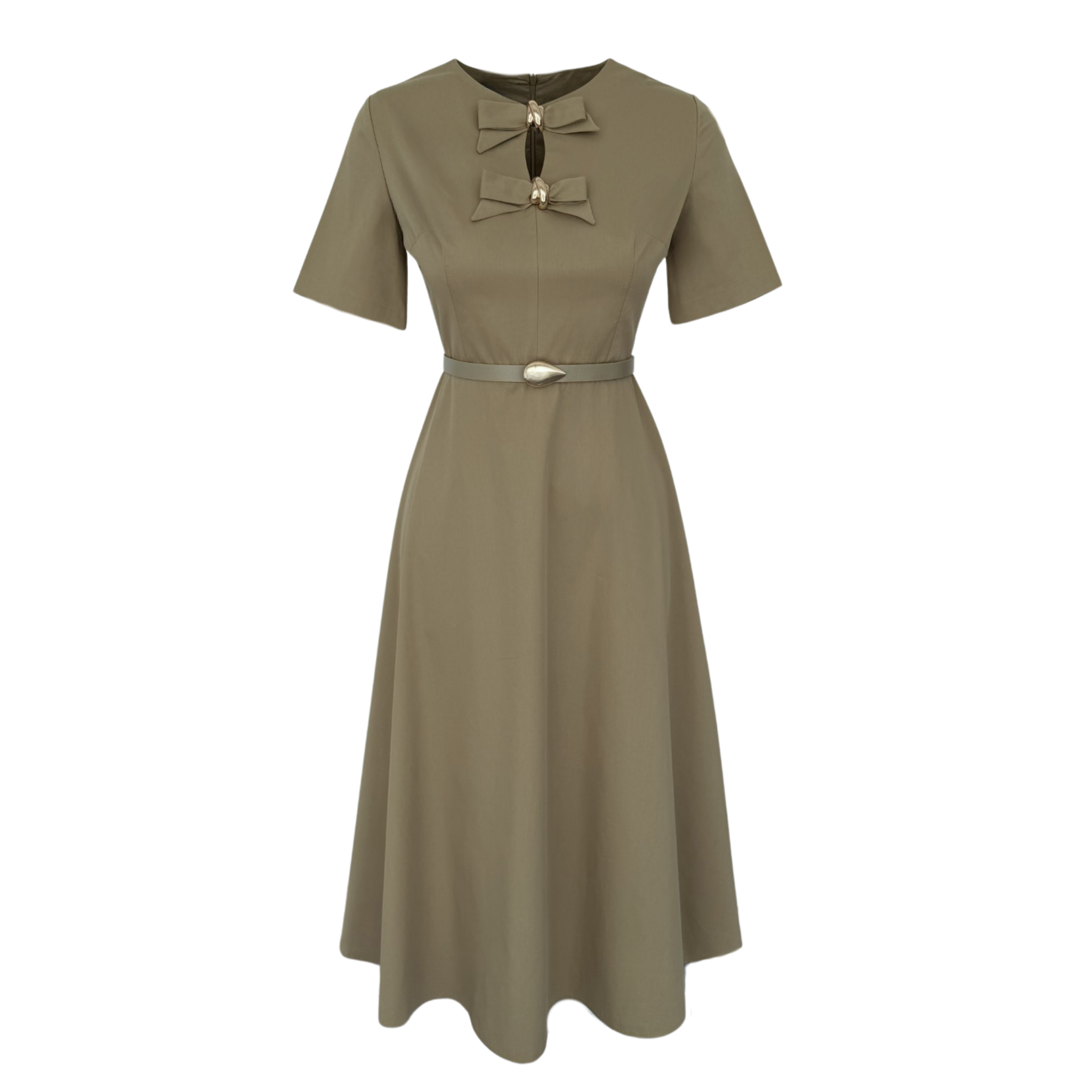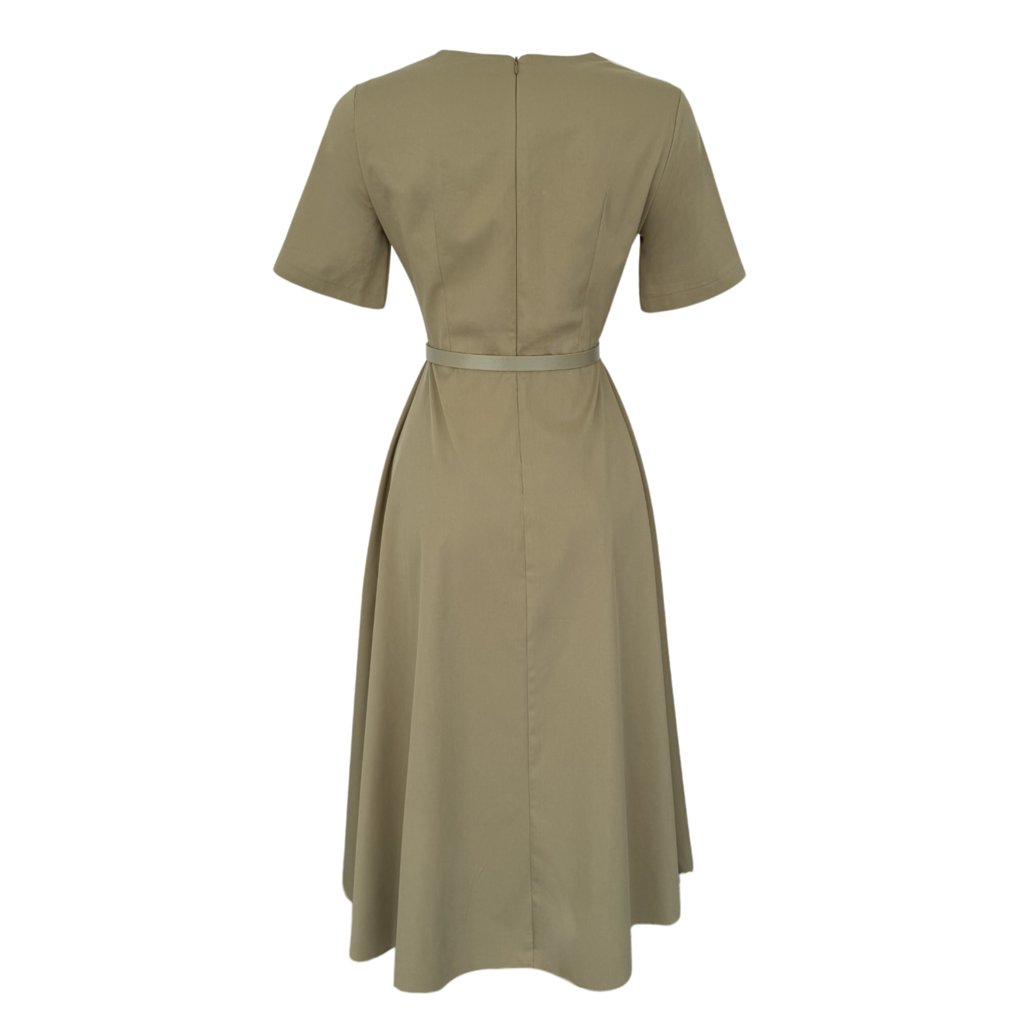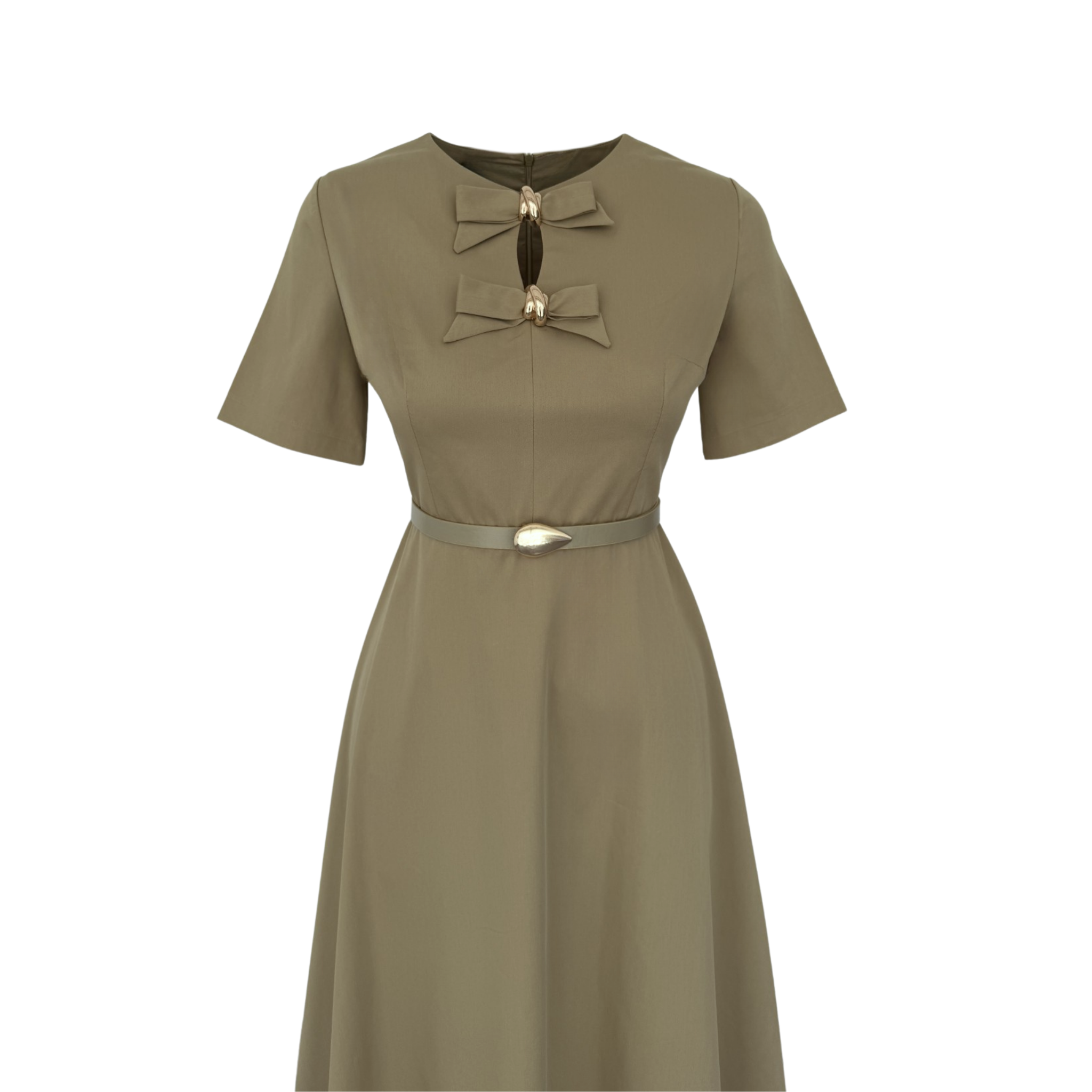 FİYONK DETAYLI KISA KOL KEMERLİ ELBİSE HAKİ
